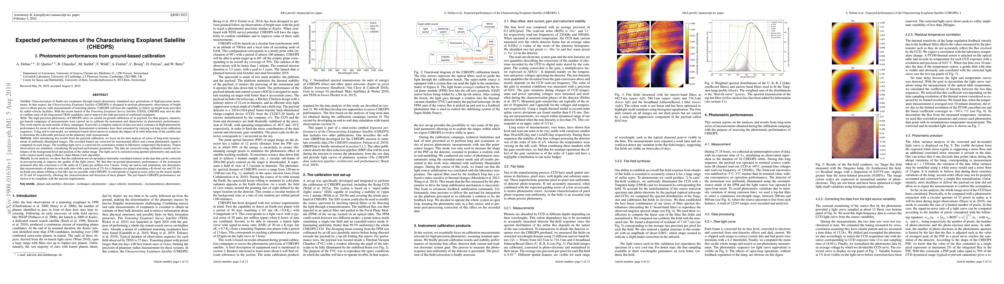The CHEOPS satellite, designed for precise photometric observations of exoplanets, achieved on-ground photometric stability of 15 parts per million over 5 hours. Simulation results indicate a 2% precision for Neptune-sized planets transiting K-dwarf stars and 5% for Earth-sized planets around Sun-like stars, meeting mission requirements.