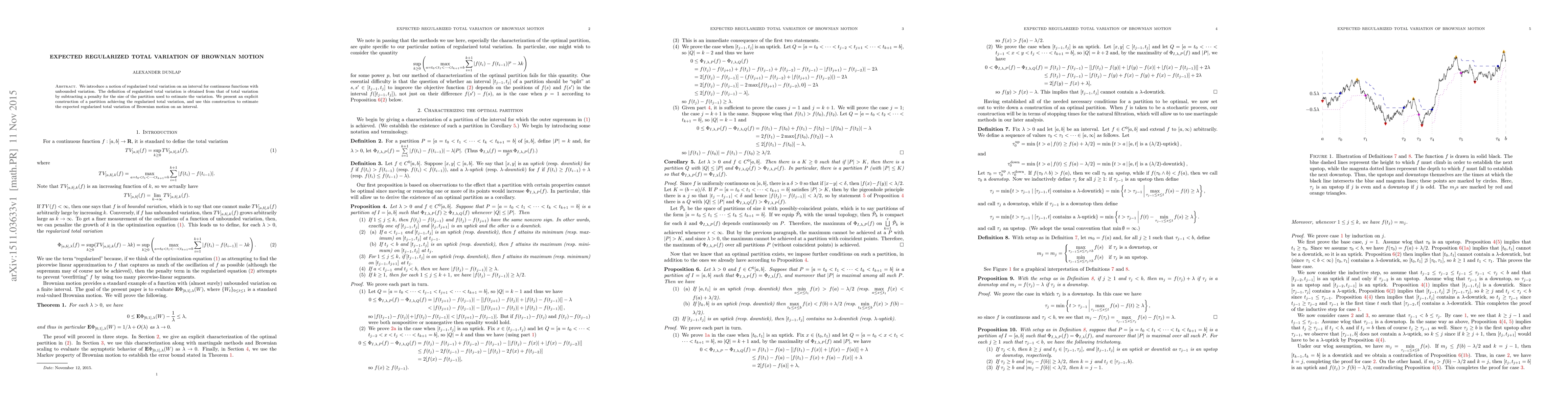 This paper introduces a regularized total variation for continuous functions, penalizing larger partitions, and constructs a specific partition to estimate the expected regularized total variation of Brownian motion on an interval.