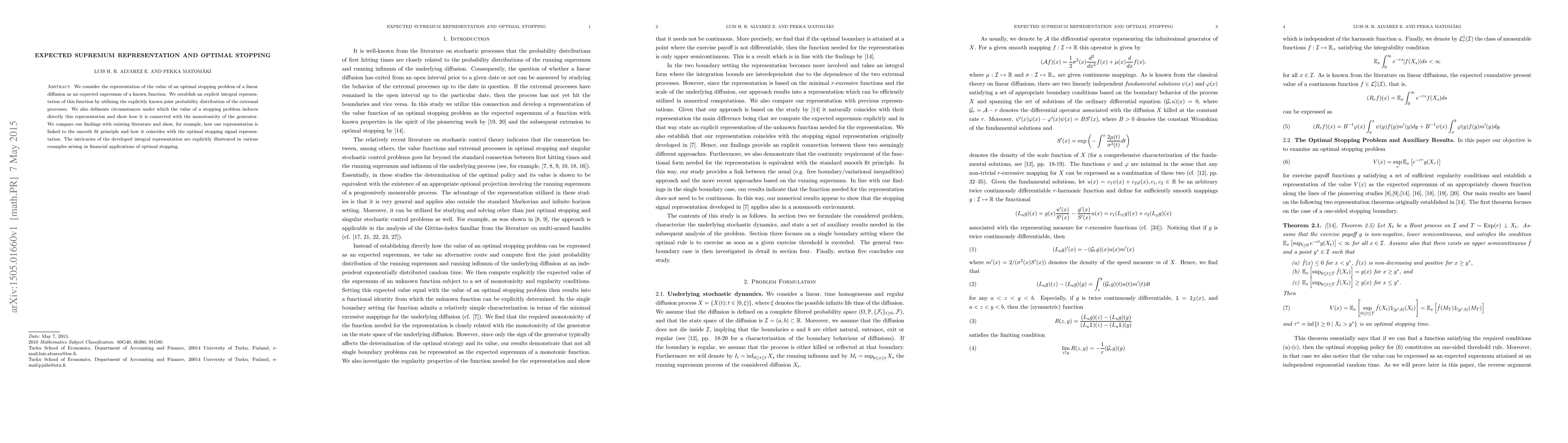 This paper presents an explicit integral representation for the value of an optimal stopping problem involving a linear diffusion, expressed as the expected supremum of a known function. It connects this representation to the monotonicity of the generator and illustrates its application in financial optimal stopping scenarios.
