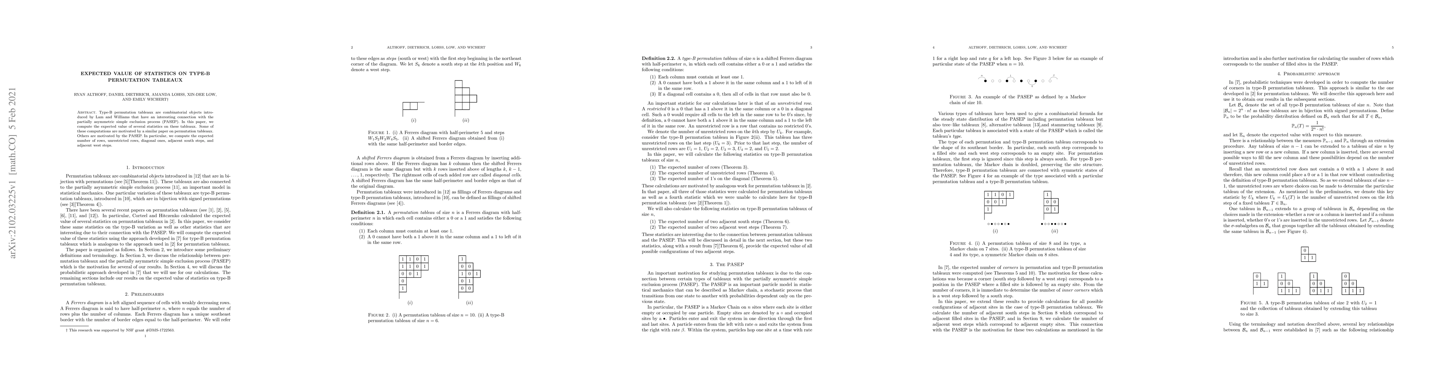 This paper calculates the expected values of several statistics on Type-B permutation tableaux, including the expected number of rows, unrestricted rows, diagonal ones, adjacent south steps, and adjacent west steps, motivated by connections to the partially asymmetric simple exclusion process (PASEP).