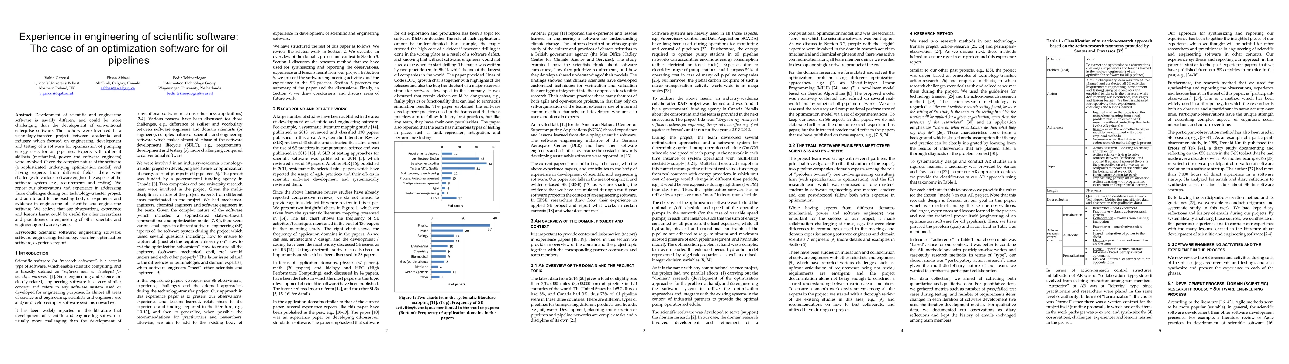 Development of scientific and engineering software is usually different and could be more challenging than the development of conventional enterprise software. The authors were involved in a technology-transfer project between academia and industry which focused on engineering, development and testing of a software for optimization of pumping energy costs for oil pipelines. Experts with different skillsets (mechanical, power and software engineers) were involved. Given the complex nature of the software (a sophisticated underlying optimization model) and having experts from different fields, there were challenges in various software engineering aspects of the software system (e.g., requirements and testing). We report our observations and experience in addressing those challenges during our technology-transfer project, and aim to add to the existing body of experience and evidence in engineering of scientific and engineering software. We believe that our observations, experience and lessons learnt could be useful for other researchers and practitioners in engineering of other scientific and engineering software systems.