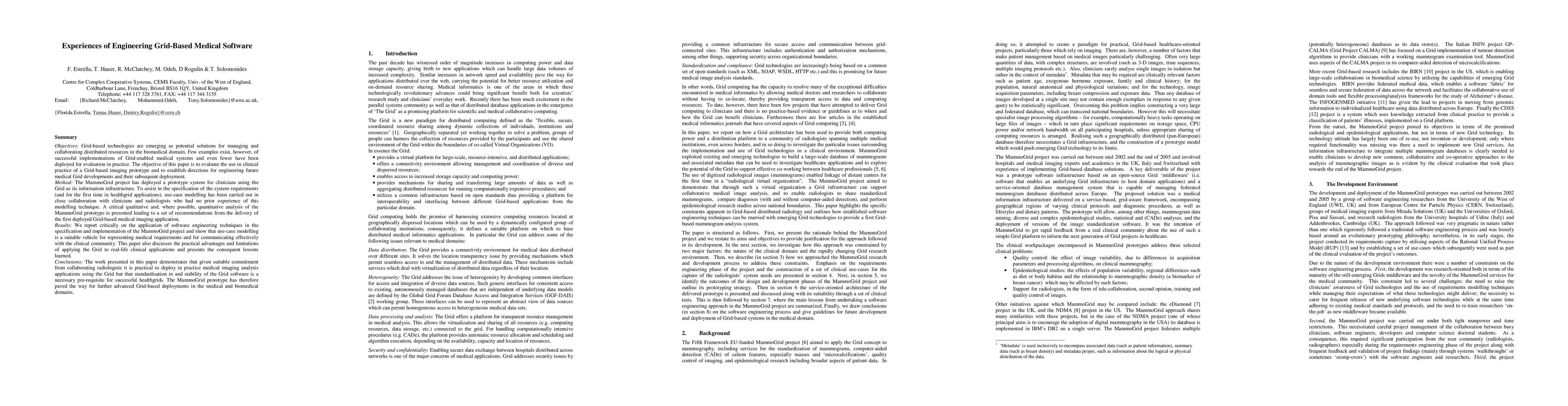 Objectives: Grid-based technologies are emerging as potential solutions for managing and collaborating distributed resources in the biomedical domain. Few examples exist, however, of successful implementations of Grid-enabled medical systems and even fewer have been deployed for evaluation in practice. The objective of this paper is to evaluate the use in clinical practice of a Grid-based imaging prototype and to establish directions for engineering future medical Grid developments and their subsequent deployment. Method: The MammoGrid project has deployed a prototype system for clinicians using the Grid as its information infrastructure. To assist in the specification of the system requirements (and for the first time in healthgrid applications), use-case modelling has been carried out in close collaboration with clinicians and radiologists who had no prior experience of this modelling technique. A critical qualitative and, where possible, quantitative analysis of the MammoGrid prototype is presented leading to a set of recommendations from the delivery of the first deployed Grid-based medical imaging application. Results: We report critically on the application of software engineering techniques in the specification and implementation of the MammoGrid project and show that use-case modelling is a suitable vehicle for representing medical requirements and for communicating effectively with the clinical community. This paper also discusses the practical advantages and limitations of applying the Grid to real-life clinical applications and presents the consequent lessons learned.