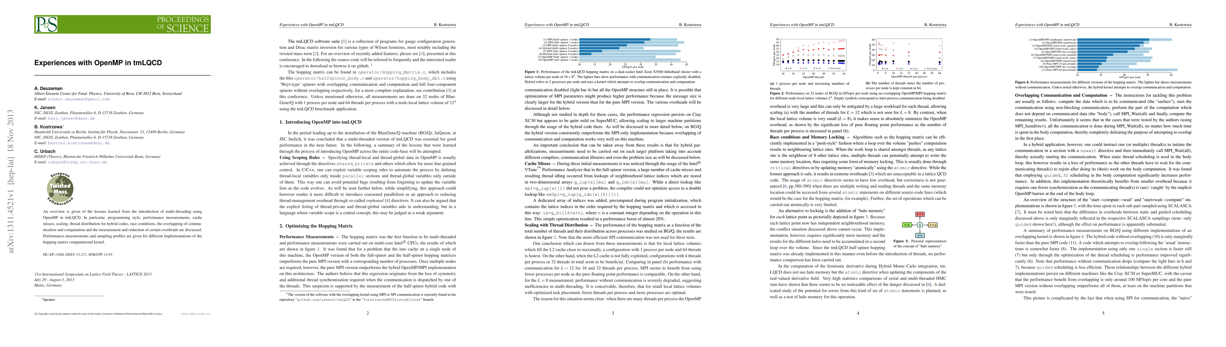 Researchers learned key lessons on using OpenMP in tmLQCD, including optimizing performance, managing cache misses, and reducing overheads, with improved results for different implementations of the hopping matrix kernel.