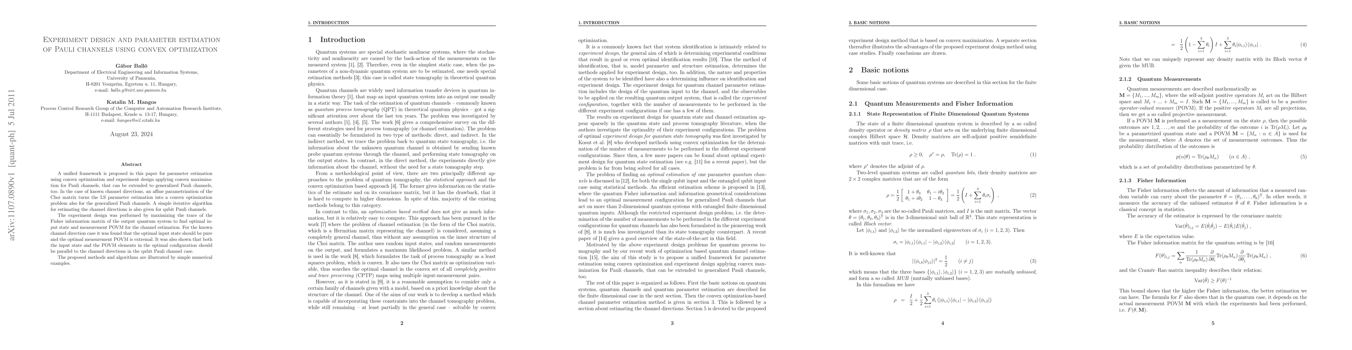 This paper presents a unified framework for parameter estimation and experiment design using convex optimization for Pauli channels, extending to generalized Pauli channels. The proposed method involves an affine parametrization of the Choi matrix and a simple iterative algorithm for estimating channel directions, with optimal input states and measurement POVMs derived through maximizing the trace of the Fisher information matrix.
