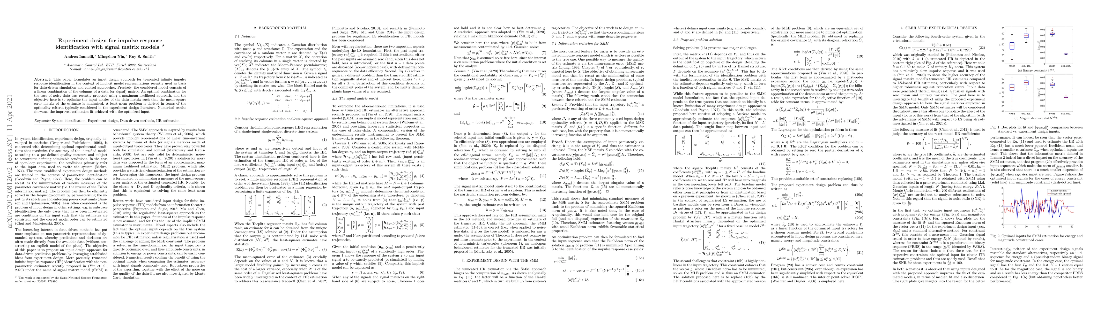 This paper proposes an input design approach to optimize signal matrix models for identifying impulse responses, resulting in improved estimation fit with noisy data.