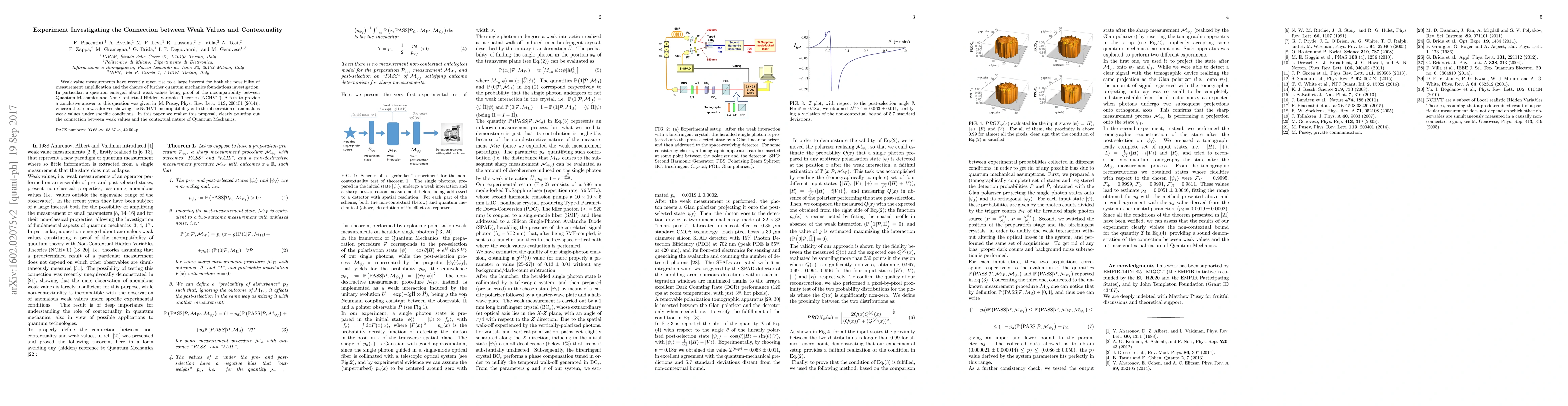 Weak value measurements have recently given rise to a large interest for both the possibility of measurement amplification and the chance of further quantum mechanics foundations investigation. In particular, a question emerged about weak values being proof of the incompatibility between Quantum Mechanics and Non-Contextual Hidden Variables Theories (NCHVT). A test to provide a conclusive answer to this question was given in [M. Pusey, Phys. Rev. Lett. 113, 200401 (2014)], where a theorem was derived showing the NCHVT incompatibility with the observation of anomalous weak values under specific conditions. In this paper we realize this proposal, clearly pointing out the strict connection between weak values and the contextual nature of Quantum Mechanics.