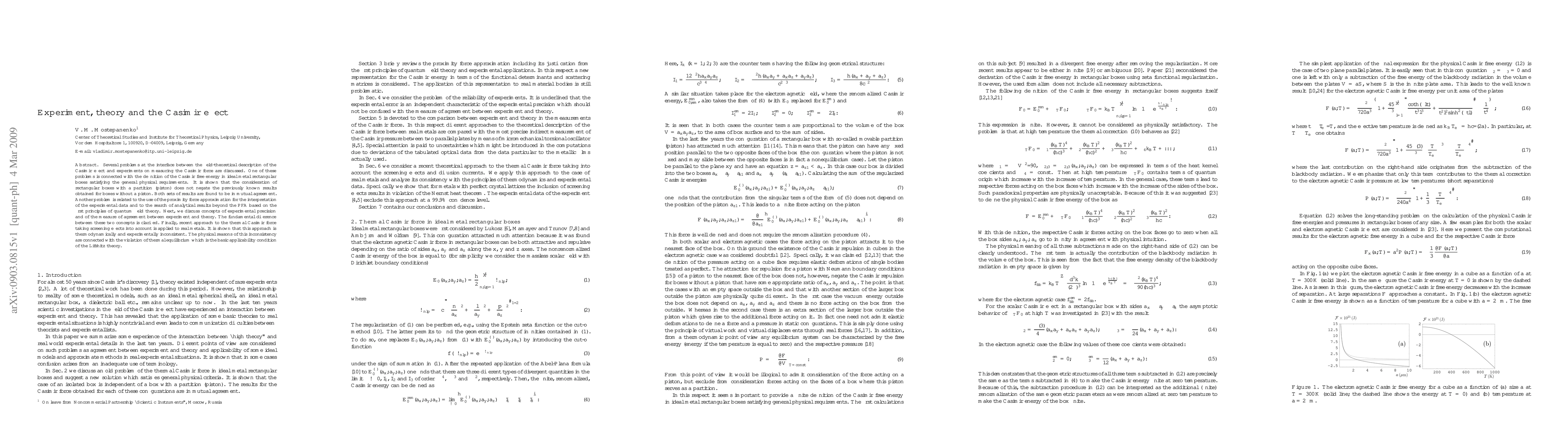 This paper examines the interface between theory and experiment in the study of the Casimir effect, addressing issues in defining Casimir free energy in rectangular boxes with partitions and the use of the proximity force approximation. It concludes that results from boxes with and without partitions align, but recent approaches to the thermal Casimir force are thermodynamically and experimentally inconsistent due to a violation of thermal equilibrium conditions.