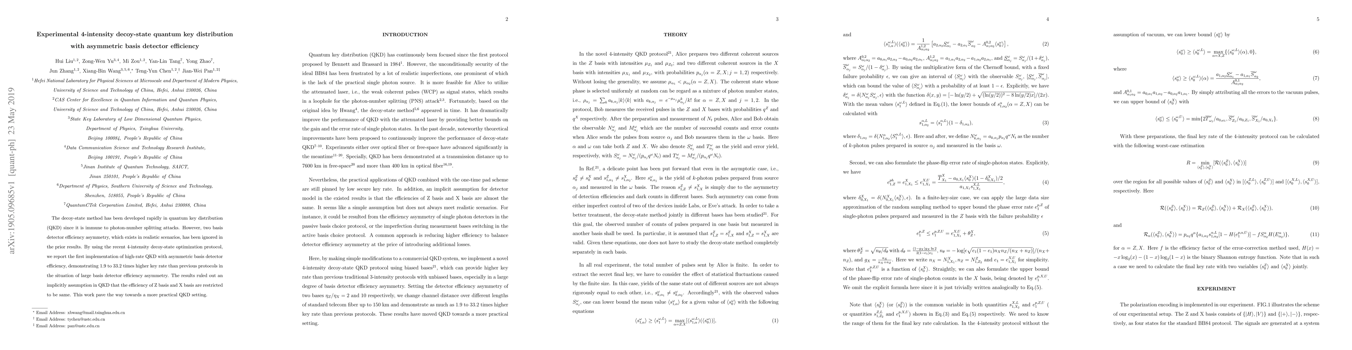 This paper presents the first implementation of high-rate decoy-state quantum key distribution (QKD) with asymmetric basis detector efficiency, achieving 1.9 to 33.2 times higher key rates than previous protocols. It challenges the assumption that Z basis and X basis detector efficiencies must be the same, paving the way for more practical QKD systems.