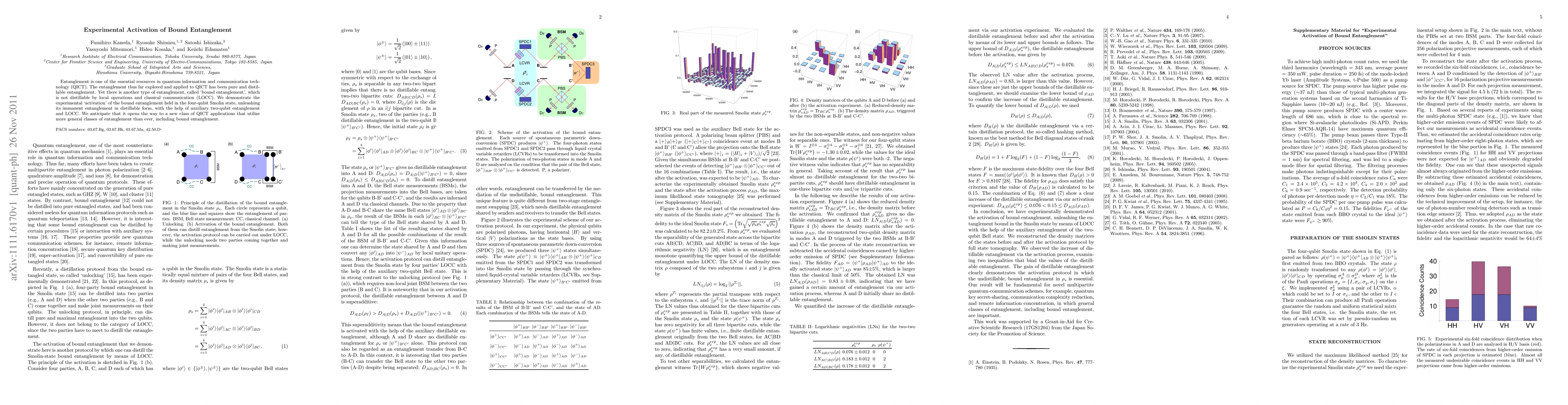 This paper demonstrates the experimental activation of bound entanglement in a four-qubit Smolin state, transforming it into distillable entanglement through the use of auxiliary two-qubit entanglement and local operations. This breakthrough could pave the way for new quantum information and communication technology applications utilizing previously untapped forms of entanglement.