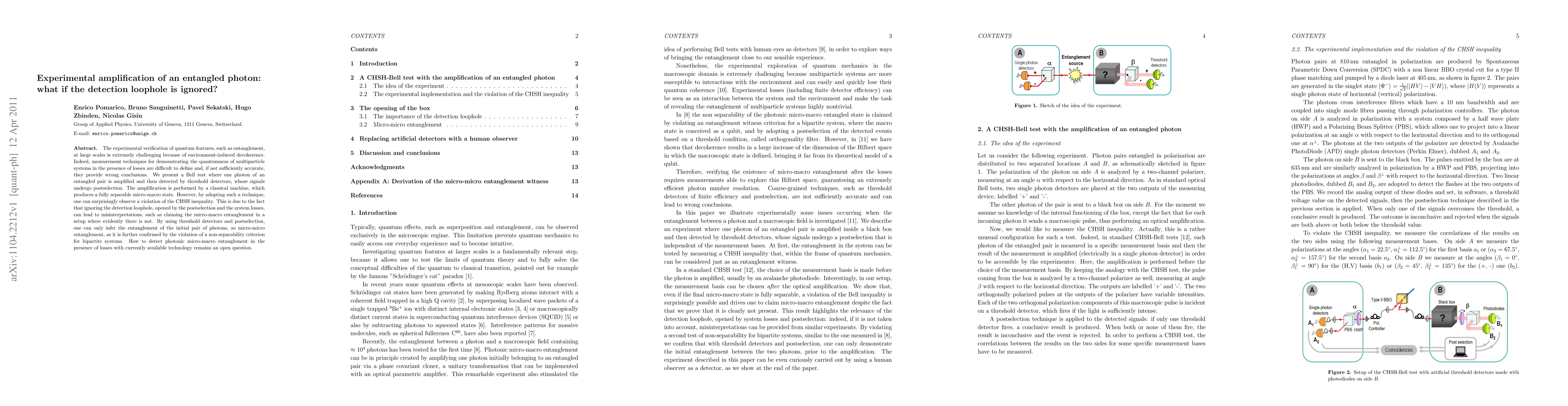 The experimental verification of quantum features, such as entanglement, at large scales is extremely challenging because of environment-induced decoherence. Indeed, measurement techniques for demonstrating the quantumness of multiparticle systems in the presence of losses are difficult to define and, if not sufficiently accurate, they provide wrong conclusions. We present a Bell test where one photon of an entangled pair is amplified and then detected by threshold detectors, whose signals undergo postselection. The amplification is performed by a classical machine, which produces a fully separable micro-macro state. However, by adopting such a technique, one can surprisingly observe a violation of the CHSH inequality. This is due to the fact that ignoring the detection loophole, opened by the postselection and the system losses, can lead to misinterpretations, such as claiming the micro-macro entanglement in a setup where evidently there is not. By using threshold detectors and postselection, one can only infer the entanglement of the initial pair of photons, so micro-micro entanglement, as it is further confirmed by the violation of a non-separability criterion for bipartite systems. How to detect photonic micro-macro entanglement in the presence of losses with currently available technology remains an open question.