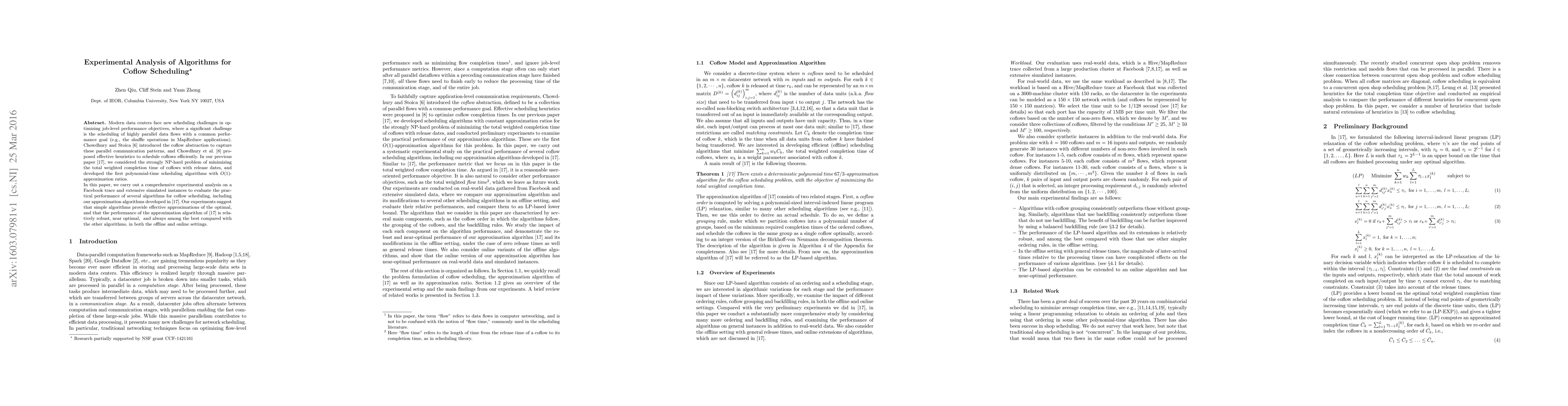 This paper conducts an experimental analysis of various algorithms for coflow scheduling, using a Facebook trace and simulated instances. The results show that simple algorithms provide effective approximations of the optimal solution, and the authors' previously developed approximation algorithms perform robustly and competitively compared to other methods in both offline and online settings.