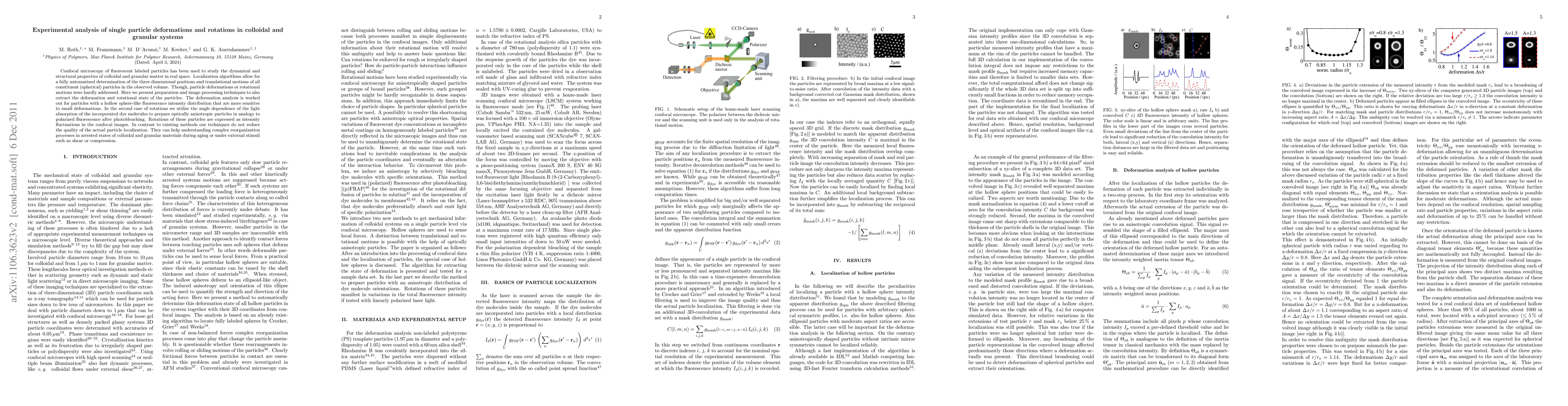 This research introduces methods using confocal microscopy to analyze deformations and rotations of spherical particles in colloidal and granular systems, enhancing understanding of complex reorganization processes in arrested states under various stimuli.