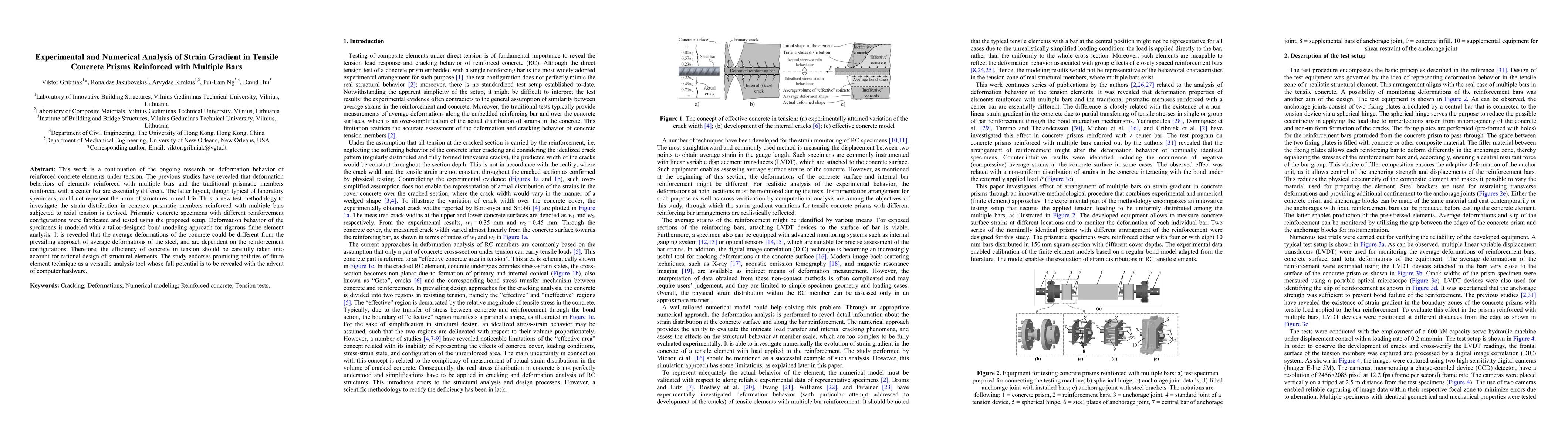 This study experimentally and numerically investigates the strain gradient in concrete prisms reinforced with multiple bars under tension, revealing differences in deformation behavior compared to traditional single-bar reinforced specimens. The research underscores the need for considering concrete's tensile efficiency in design, highlighting the finite element method's potential for structural analysis.