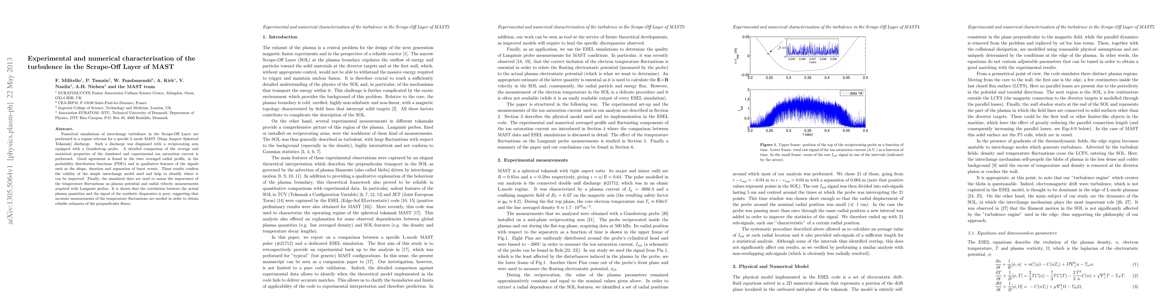 This paper compares numerical simulations of turbulence in MAST's Scrape-Off Layer with experimental data from a Gundestrup probe, finding good agreement in radial profiles and burst event characteristics, validating the interchange model and highlighting the need for accurate temperature fluctuation measurements for reliable plasma diagnostics.