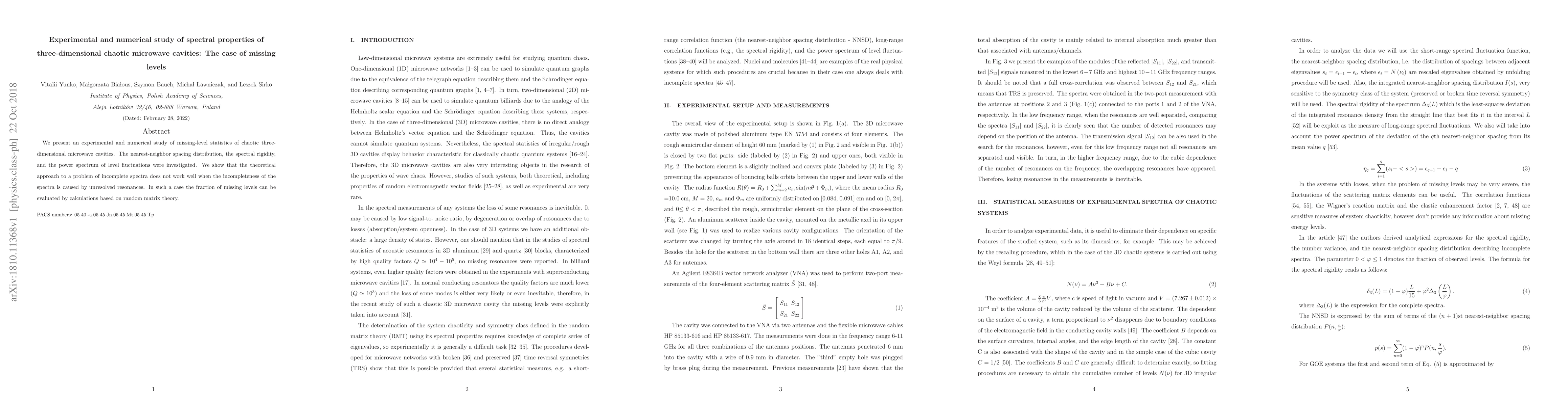 This paper investigates the missing-level statistics in chaotic three-dimensional microwave cavities through experimental and numerical methods. It finds that theoretical approaches fail when incomplete spectra arise from unresolved resonances, suggesting that random matrix theory can better evaluate the fraction of missing levels.