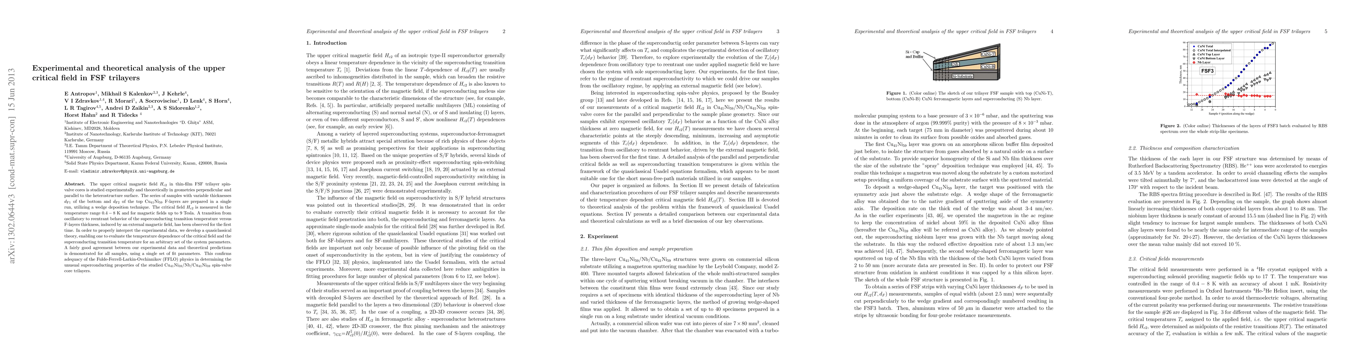 This paper investigates the upper critical magnetic field H_{c2} in FSF trilayer spin-valve cores experimentally and theoretically, observing a transition from oscillatory to reentrant behavior in superconducting transition temperature. A quasiclassical theory is developed to match experimental data, confirming the applicability of FFLO physics in explaining the unusual superconducting properties.