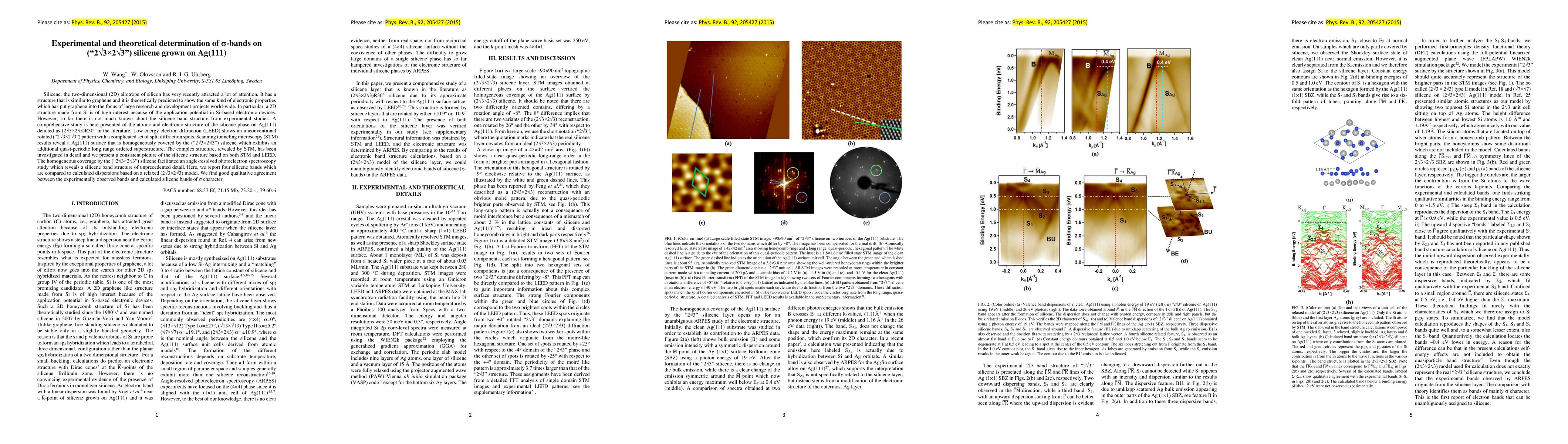 This study experimentally determines the detailed band structure of silicene grown on Ag(111) using angle-resolved photoelectron spectroscopy, revealing four silicene bands of σ-character. Theoretical calculations based on a relaxed (2√3×2√3) model show good qualitative agreement with the experimental findings.