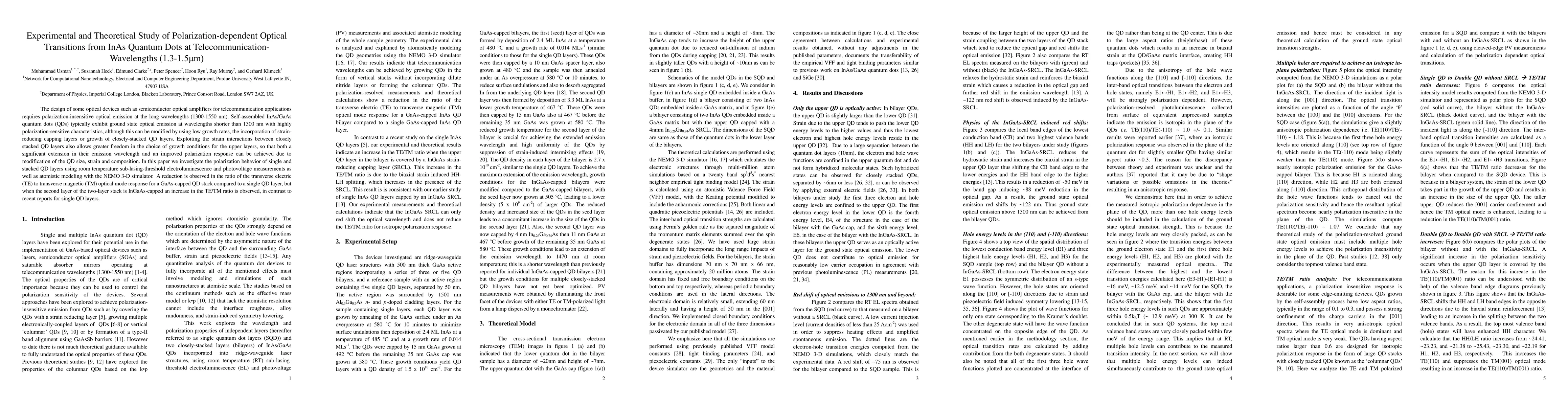 The design of some optical devices such as semiconductor optical amplifiers for telecommunication applications requires polarization-insensitive optical emission at the long wavelengths (1300-1550 nm). Self-assembled InAs/GaAs quantum dots (QDs) typically exhibit ground state optical emission at wavelengths shorter than 1300 nm with highly polarization-sensitive characteristics, although this can be modified by using low growth rates, the incorporation of strain-reducing capping layers or growth of closely-stacked QD layers. Exploiting the strain interactions between closely stacked QD layers also allows greater freedom in the choice of growth conditions for the upper layers, so that both a significant extension in their emission wavelength and an improved polarization response can be achieved due to modification of the QD size, strain and composition. In this paper we investigate the polarization behavior of single and stacked QD layers using room temperature sub-lasing-threshold electroluminescence and photovoltage measurements as well as atomistic modeling with the NEMO 3-D simulator. A reduction is observed in the ratio of the transverse electric (TE) to transverse magnetic (TM) optical mode response for a GaAs-capped QD stack compared to a single QD layer, but when the second layer of the two-layer stack is InGaAs-capped an increase in the TE/TM ratio is observed, in contrast to recent reports for single QD layers.