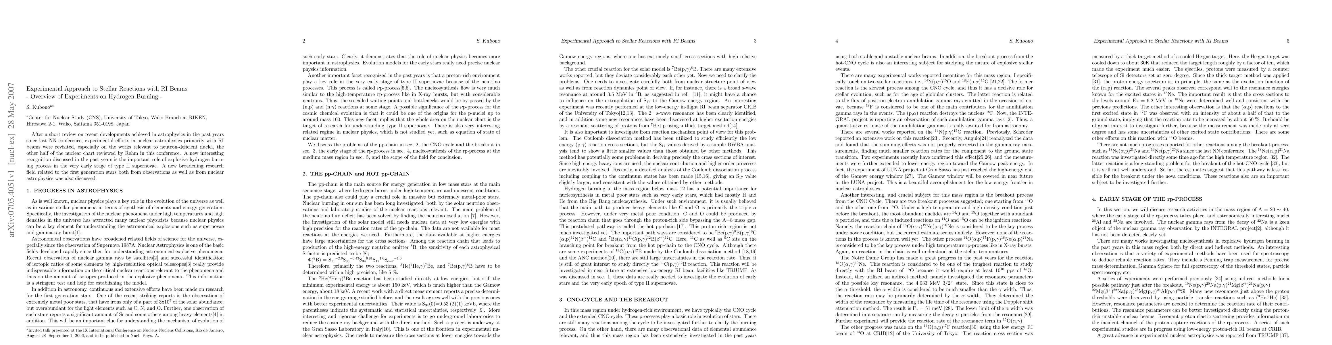 After a short review on resent developments achieved in astrophysics in the past years since last NN conference, experimental efforts in nuclear astrophysics primarily with RI beams were revisited, especially on the works relevant to neutron-deficient nuclei, the other half of the nuclear chart reviewed by Rehm in this conference. A new interesting recognition discussed in the past years is the important role of explosive hydrogen burning process in the very early stage of type II supernovae. A new broadening research field related to the first generation stars both from observations as well as from nuclear astrophysics was also discussed.