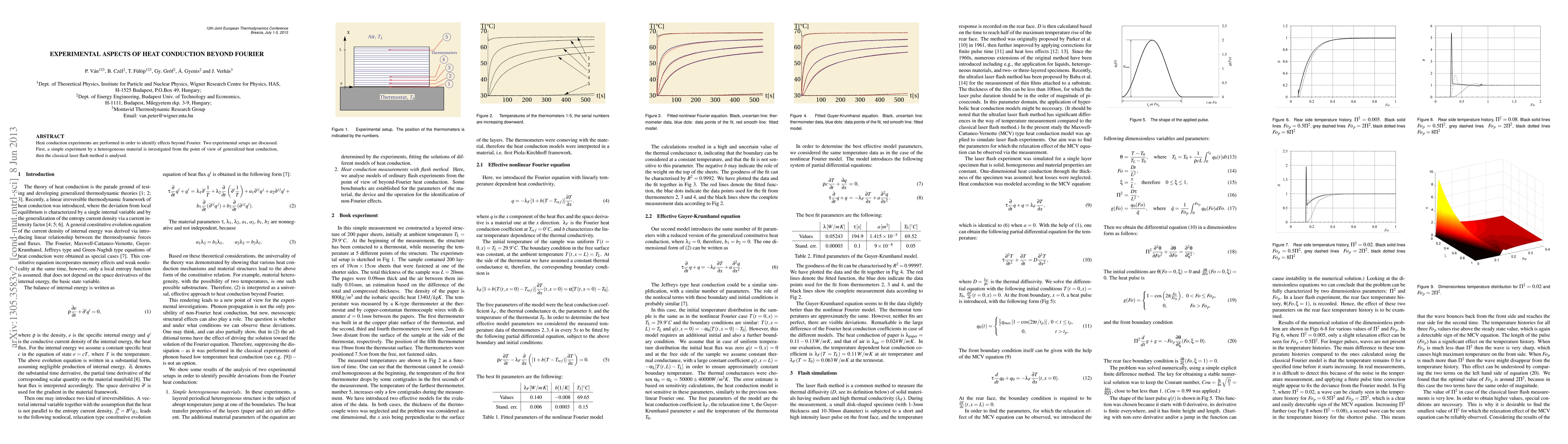 This paper explores heat conduction experiments to identify phenomena beyond Fourier's law. It examines two setups: a heterogeneous material experiment for generalized heat conduction and a classical laser flash method analysis.