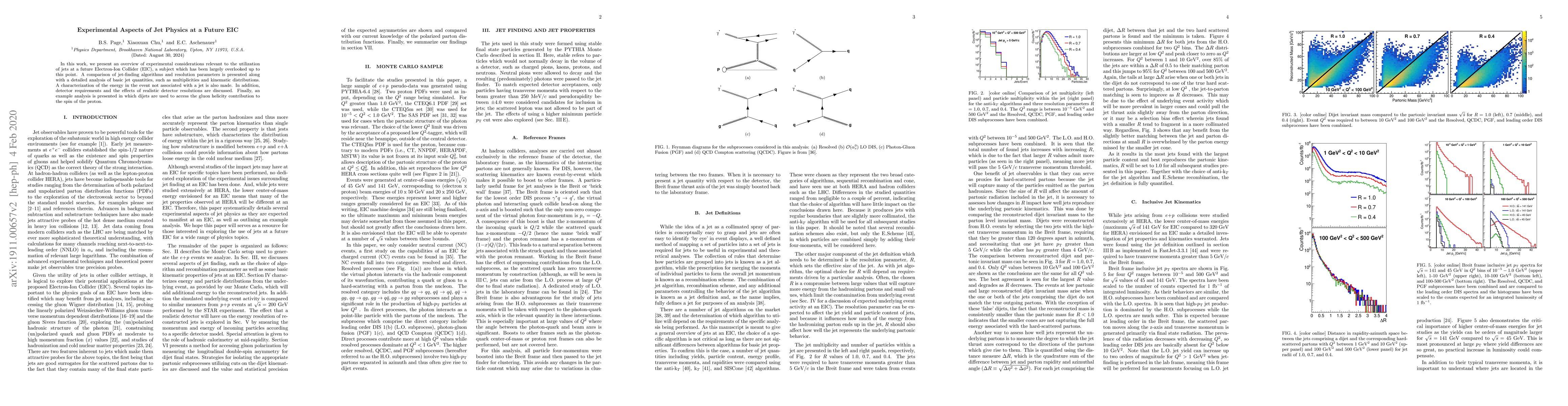 In this work, we present an overview of experimental considerations relevant to the utilization of jets at a future Electron-Ion Collider (EIC), a subject which has been largely overlooked up to this point. A comparison of jet-finding algorithms and resolution parameters is presented along with a detailed analysis of basic jet quantities, such as multiplicities and kinematic distributions. A characterization of the energy in the event not associated with a jet is also made. In addition, detector requirements and the effects of realistic detector resolutions are discussed. Finally, an example analysis is presented in which dijets are used to access the gluon helicity contribution to the spin of the proton.