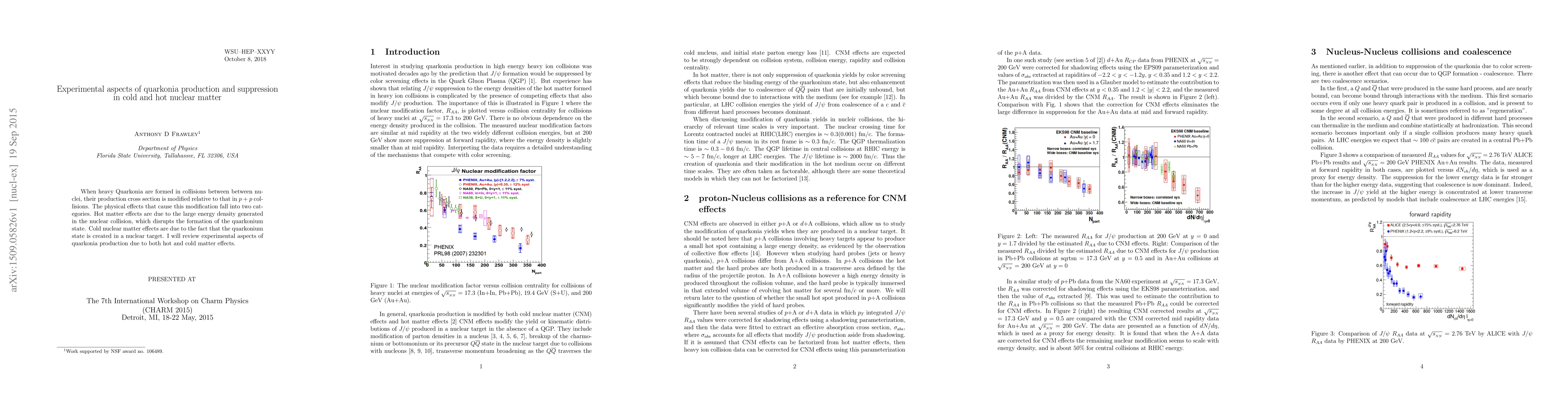 When heavy Quarkonia are formed in collisions between between nuclei, their production cross section is modified relative to that in p+p collisions. The physical effects that cause this modification fall into two categories. Hot matter effects are due to the large energy density generated in the nuclear collision, which disrupts the formation of the quarkonium state. Cold nuclear matter effects are due to the fact that the quarkonium state is created in a nuclear target. I will review experimental aspects of quarkonia production due to both hot and cold matter effects.