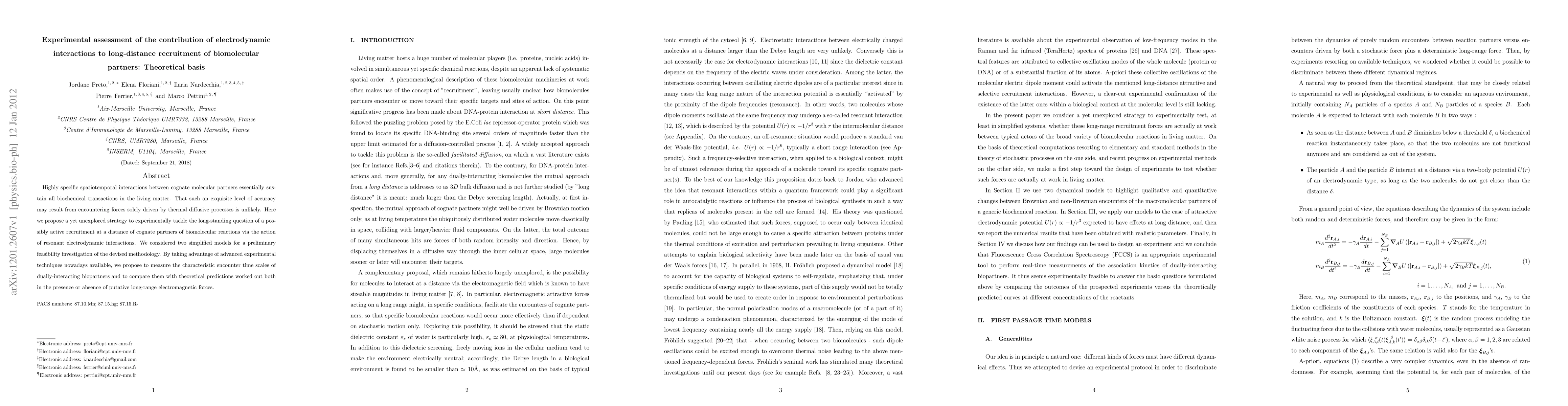 Researchers propose a new experimental approach to investigate the role of electrodynamic interactions in long-distance recruitment of biomolecular partners. They aim to measure characteristic encounter time scales and compare them with theoretical predictions to determine if these forces contribute to biochemical transactions.