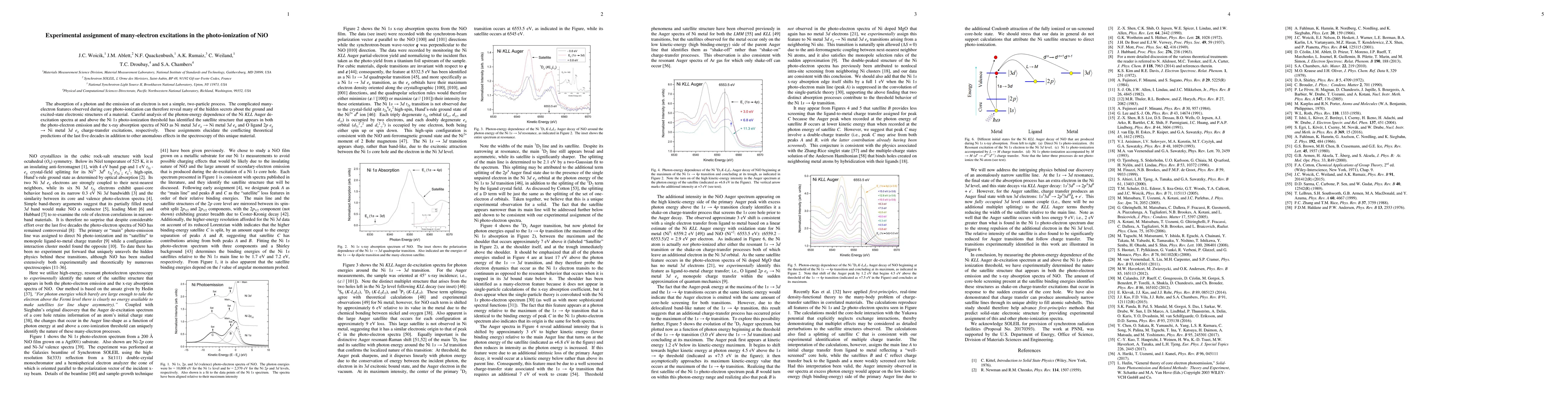 This paper identifies many-electron excitations in the photo-ionization of NiO through detailed analysis of Ni KLL Auger spectra, revealing Ni metal 3d and O ligand 2p charge-transfer excitations. These findings resolve long-standing theoretical discrepancies and highlight unique spectroscopic anomalies in NiO.