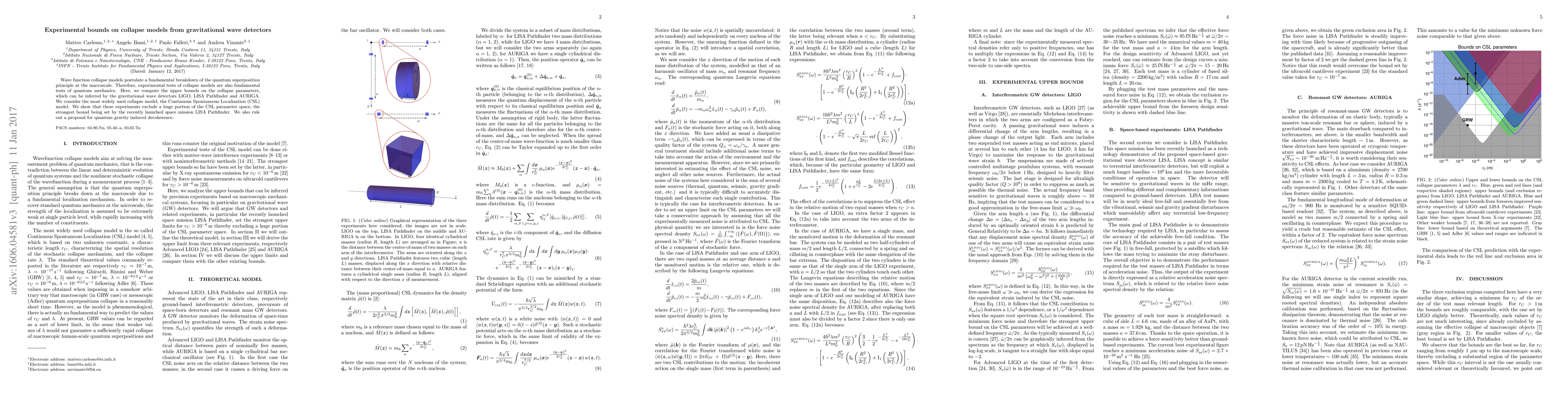 This paper sets experimental bounds on collapse models, specifically the continuous spontaneous localization (CSL) model, using gravitational wave detectors like LIGO, LISA Pathfinder, and AURIGA. The results exclude a significant portion of the CSL parameter space, with the strongest constraints provided by LISA Pathfinder, thereby reinforcing the quantum superposition principle.