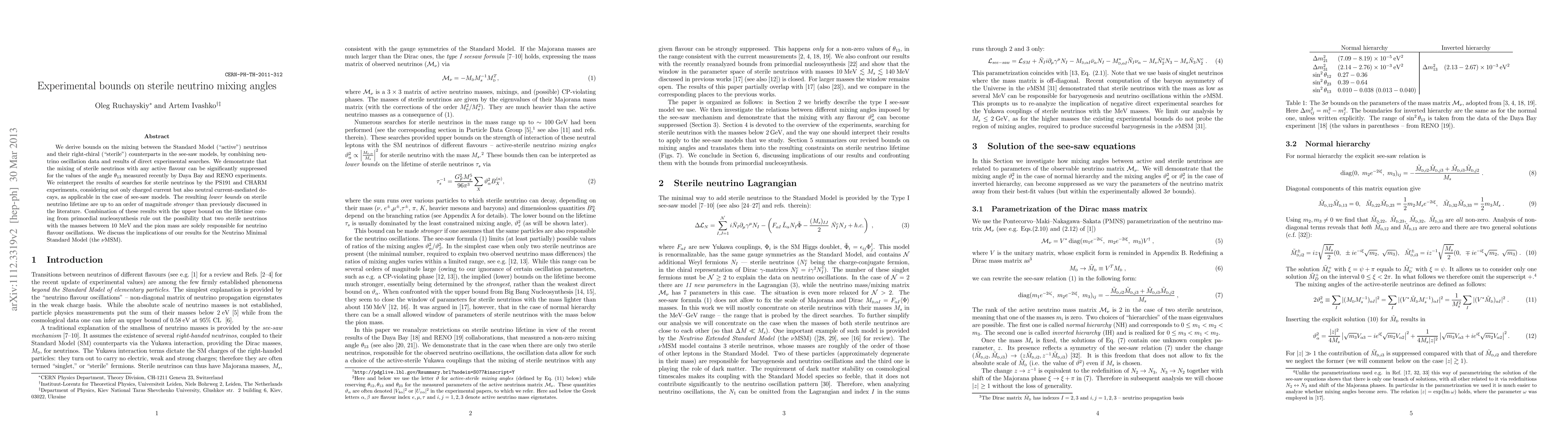 We derive bounds on the mixing between the left-chiral ("active") and the right-chiral ("sterile") neutrinos, provided from the combination of neutrino oscillation data and direct experimental searches for sterile neutrinos. We demonstrate that the mixing of sterile neutrinos with any flavour can be significantly suppressed, provided that the angle theta_13 is non-zero. This means that the lower bounds on sterile neutrino lifetime, coming from the negative results of direct experimental searches can be relaxed (by as much as the order of magnitude at some masses). We also demonstrate that the results of the negative searches of sterile neutrinos with PS191 and CHARM experiments are not applicable directly to the see-saw models. The reinterpretation of these results provides up to the order of magnitude stronger bounds on sterile neutrino lifetime than previously discussed in the literature. We discuss the implications of our results for the Neutrino Minimal Standard Model (the NuMSM).