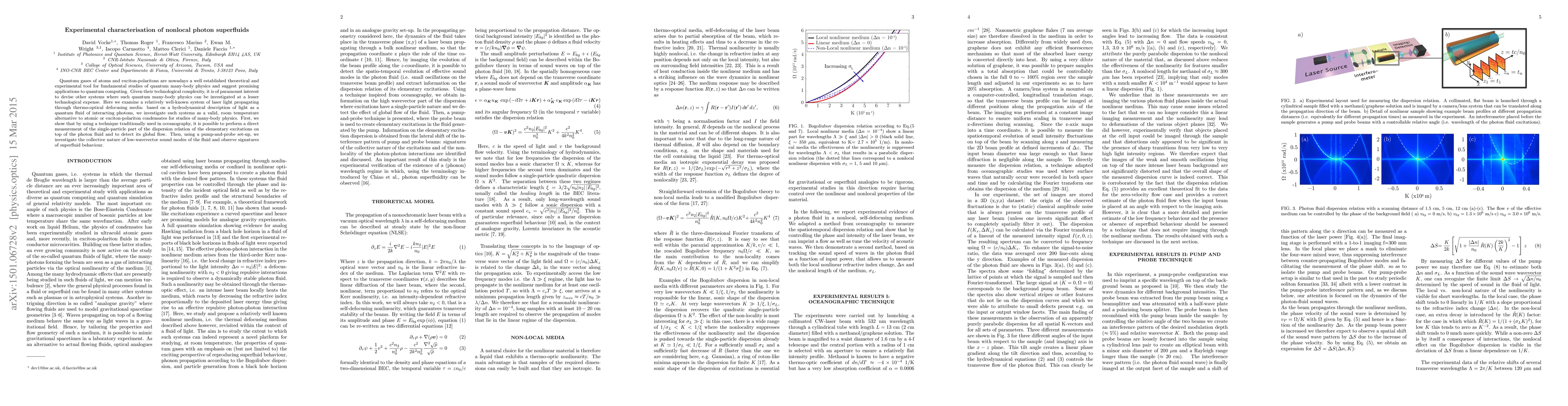 Quantum gases of atoms and exciton-polaritons are nowadays a well established theoretical and experimental tool for fundamental studies of quantum many-body physics and suggest promising applications to quantum computing. Given their technological complexity, it is of paramount interest to devise other systems where such quantum many-body physics can be investigated at a lesser technological expense. Here we examine a relatively well-known system of laser light propagating through thermo-optical defocusing media: based on a hydrodynamical description of light as a quantum fluid of interacting photons, we investigate such systems as a valid, room temperature alternative to atomic or exciton-polariton condensates for studies of many-body physics. First, we show that by using a technique traditionally used in oceanography, it is possible to perform a direct measurement of the single-particle part of the dispersion relation of the elementary excitations on top of the photon fluid and to detect its global flow. Then, using a pump-and-probe set-up, we investigate the collective nature of low-wavevector sound modes of the fluid and observe signatures of superfluid behaviour.
