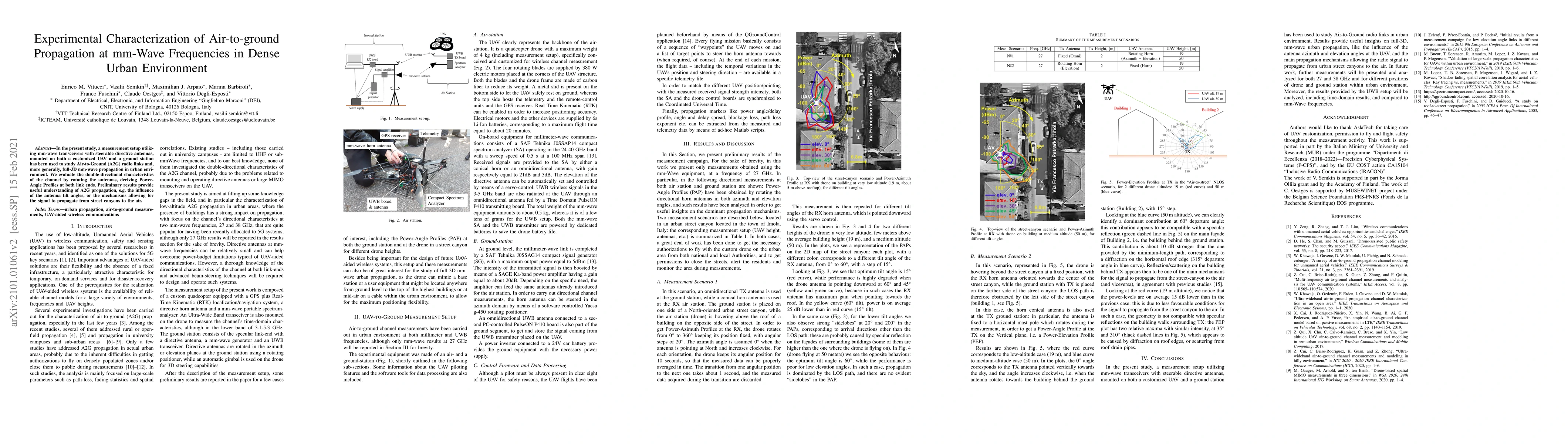 This study employs mm-wave transceivers on a UAV and ground station to characterize air-to-ground propagation in dense urban environments, focusing on the double-directional channel characteristics and the impact of antenna tilt angles. Preliminary findings reveal insights into signal propagation mechanisms through urban street canyons.