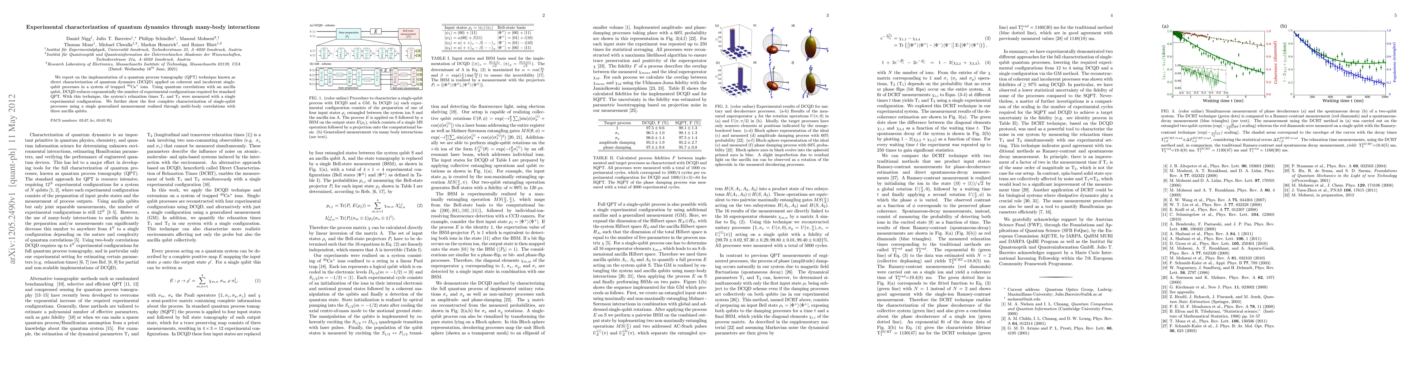 This paper implements a novel quantum process tomography technique called direct characterization of quantum dynamics (DCQD) to efficiently characterize single-qubit processes in trapped calcium 40 ions, significantly reducing experimental setups. The technique leverages quantum correlations and ancilla qubits to measure relaxation times and achieve a complete characterization using a single generalized measurement.