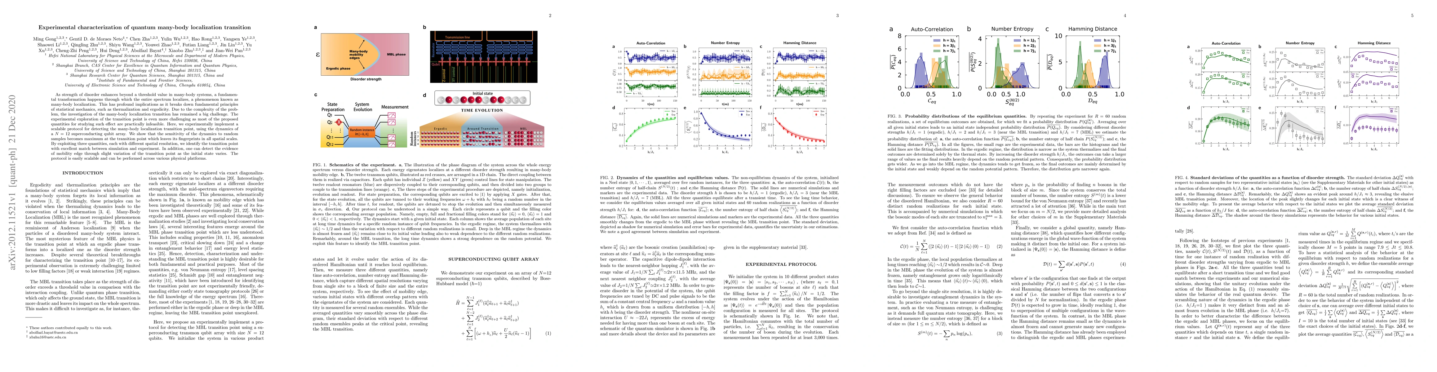 This paper presents an experimental method to detect the many-body localization transition in a superconducting qubit array, showing maximum sensitivity to disorder at the transition point. The authors identify the transition using three quantities with varying spatial resolutions, demonstrating scalability across different physical platforms.