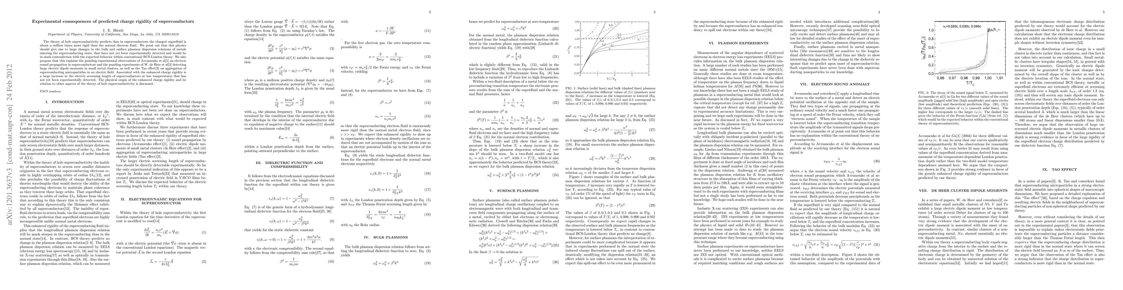 The theory of hole superconductivity predicts that in superconductors the charged superfluid is about a million times more rigid than the normal electron fluid. We point out that this physics should give rise to large changes in the bulk and surface plasmon dispersion relations of metals entering the superconducting state, that have not yet been experimentally detected and would be in stark contradiction with the expected behavior within conventional BCS-London theory. We also propose that this explains the puzzling experimental observations of Avramenko et al\cite{sound} on electron sound propagation in superconductors and the puzzling experiments of W. de Heer et al\cite{clusters} detecting large electric dipole moments in small metal clusters, as well as the Tao effect\cite{tao} on aggregation of superconducting microparticles in an electric field. Associated with the enhanced charge rigidity is a large increase in the electric screening length of superconductors at low temperatures that has not yet been experimentally detected. The physical origin of the enhanced charge rigidity and its relation to other aspects of the theory of hole superconductivity is discussed.