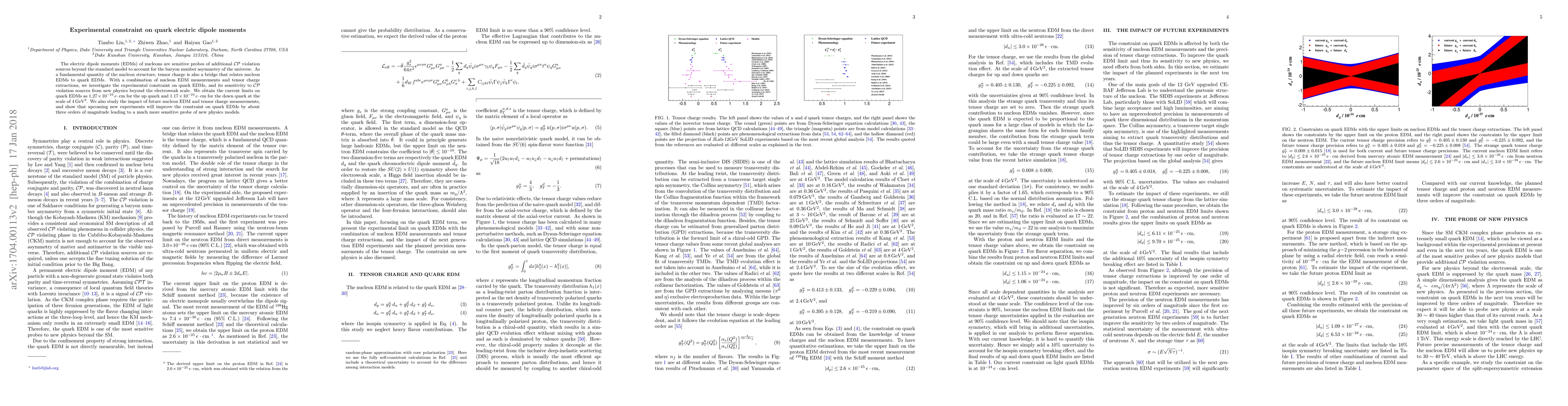 This research paper sets limits on quark electric dipole moments, which could reveal new physics beyond the standard model, with future experiments expected to improve the constraint by three orders of magnitude.