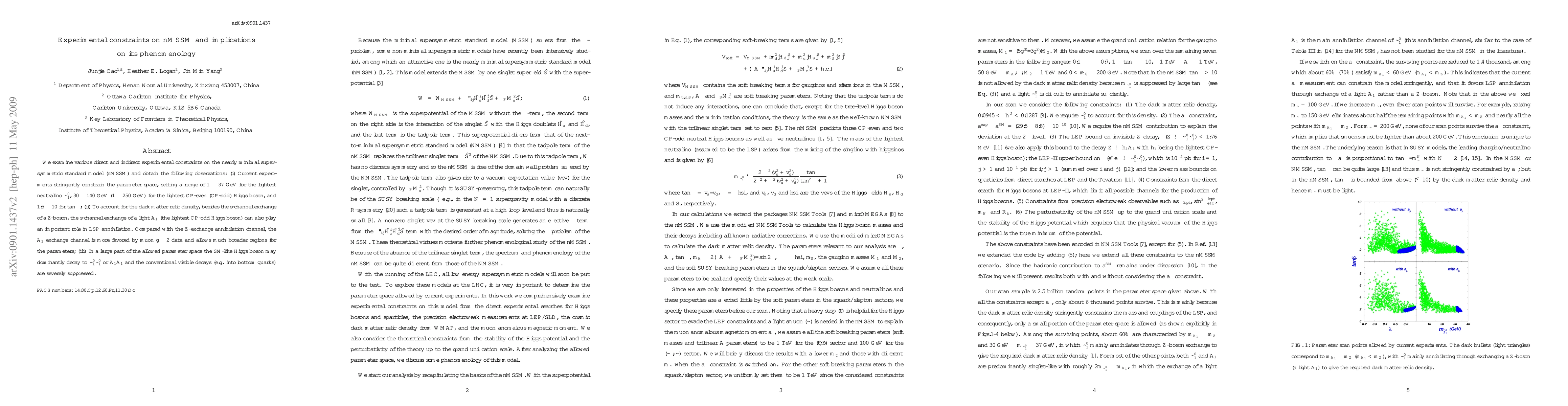 We examine various direct and indirect experimental constraints on the nearly minimal supersymmetric standard model (nMSSM) and obtain the following observations: (i) Current experiments stringently constrain the parameter space, setting a range of 1-37 GeV for the lightest neutralino (LSP), 30-140 GeV (1-250 GeV) for the lightest CP-even (CP-odd) Higgs boson, and 1.5-10 for \tan\beta; (ii) To account for the dark matter relic density, besides the s-channel exchange of a Z-boson, the s-channel exchange of a light A_1 (the lightest CP-odd Higgs boson) can also play an important role in LSP annihilation. Compared with the Z-exchange annihilation channel, the A_1 exchange channel is more favored by muon g-2 data and allows much broader regions for the parameters; (iii) In a large part of the allowed parameter space the SM-like Higgs boson may dominantly decay to LSP pair or A_1 pair and the conventional visible decays (e.g. into bottom quarks) are severely suppressed.