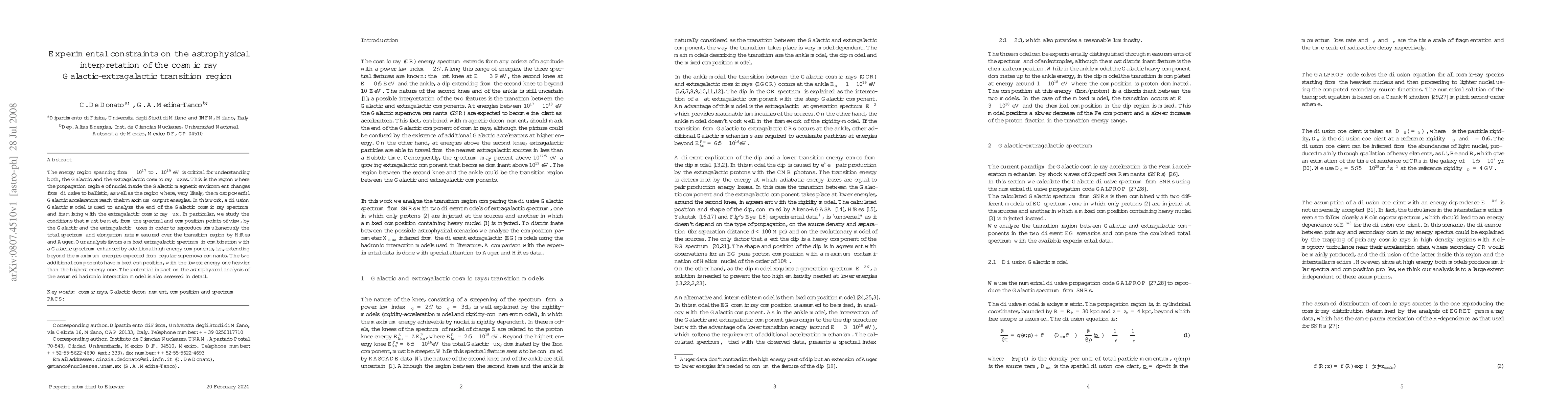 This paper investigates the cosmic ray transition region between Galactic and extragalactic sources, using a diffusion model to analyze the spectrum and composition. It finds that a mixed extragalactic spectrum combined with an enhanced Galactic spectrum, including high-energy components beyond typical supernova remnants, best fits the observed data, while also considering the influence of different hadronic interaction models.