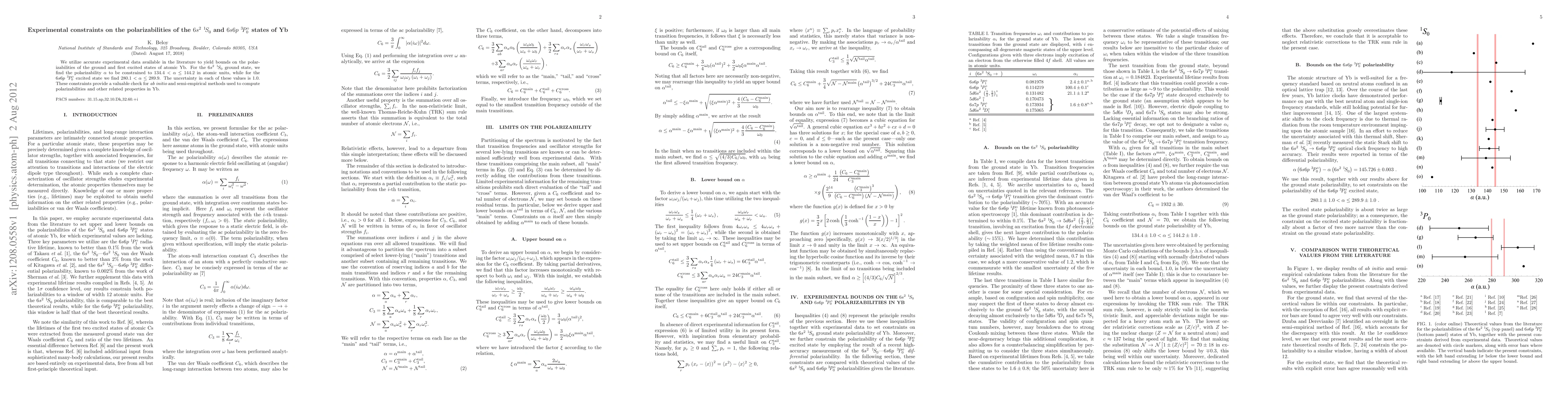 Yb. For the 6s^2 1S0 ground state, we find the polarizability alpha to be