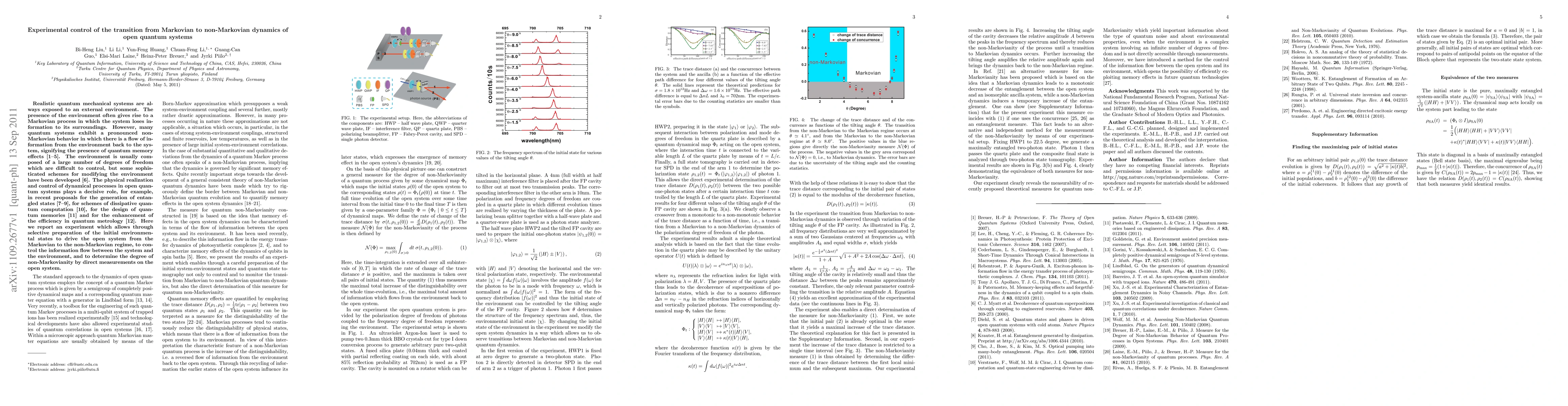 This paper reports an experiment demonstrating control over the transition from Markovian to non-Markovian dynamics in open quantum systems by manipulating the initial states of the environment. The study enables the regulation of information flow between the system and its surroundings, with implications for quantum computation, memory, and metrology.