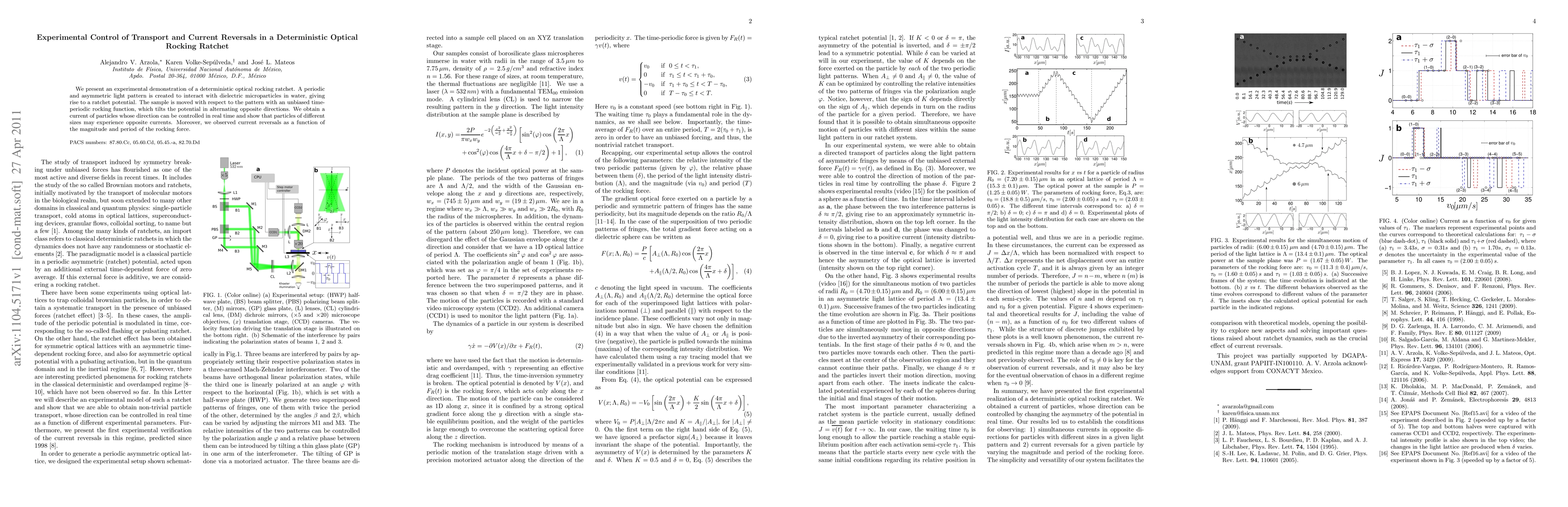 This study experimentally demonstrates a deterministic optical rocking ratchet, where a periodic asymmetric light pattern drives dielectric microparticles in water, enabling real-time control over particle transport direction and current reversals based on rocking force parameters.