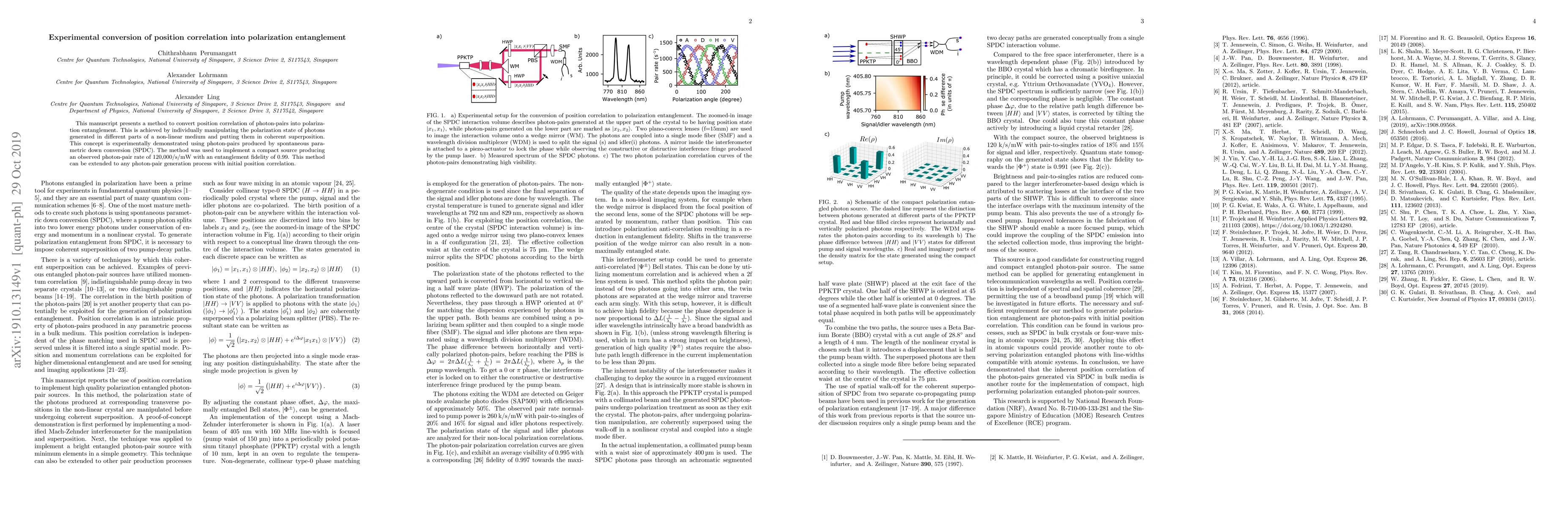 This paper details a method to convert position-correlated photon pairs into polarization entanglement through polarization state manipulation in a non-linear medium, demonstrated experimentally with SPDC-generated pairs, achieving a photon-pair rate of 120,000/s/mW and an entanglement fidelity of 0.99. The technique is versatile and can be applied to various photon-pair generation processes.