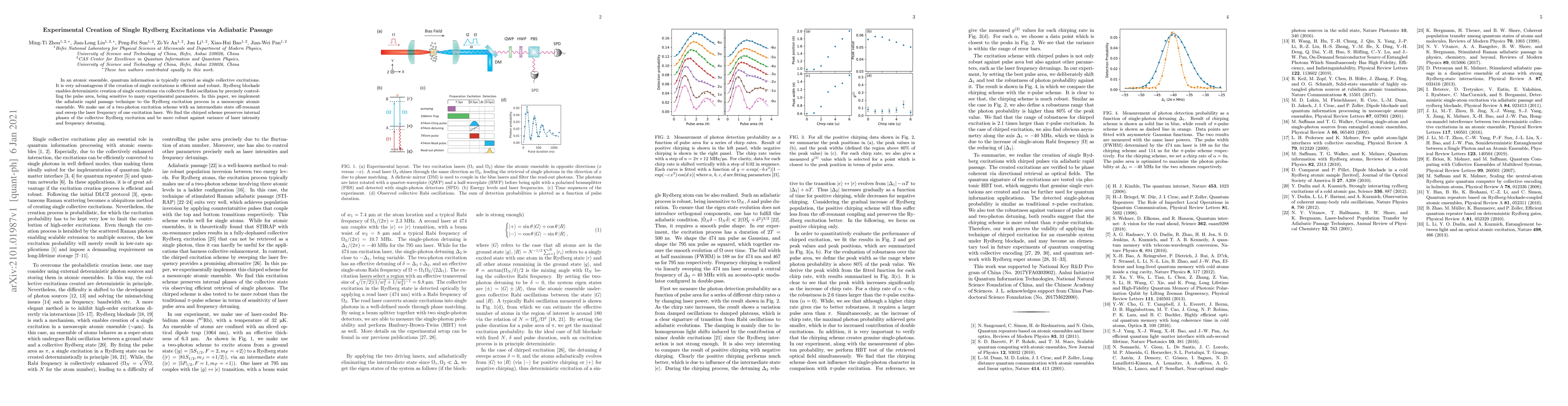 This research paper demonstrates the creation of single Rydberg excitations in an atomic ensemble using adiabatic rapid passage, achieving robustness against experimental parameter variance through a chirped two-photon excitation scheme that preserves internal phases. The technique shows enhanced efficiency and reliability in generating single excitations via Rydberg blockade.