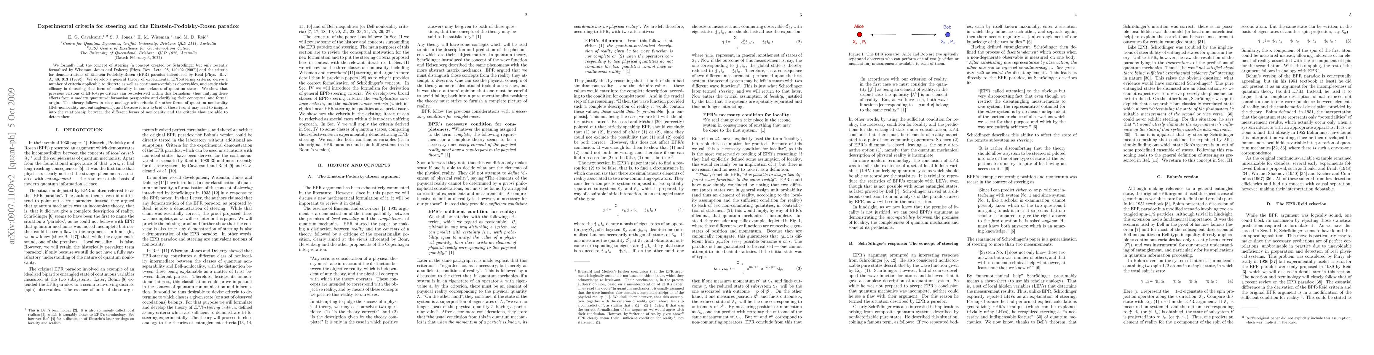 This paper establishes a formal connection between quantum steering and the Einstein-Podolsky-Rosen (EPR) paradox, developing a comprehensive theory for experimental EPR-steering criteria. It unifies previous EPR criteria within a modern quantum-information framework, offering insights into the relationship between different forms of quantum nonlocality.