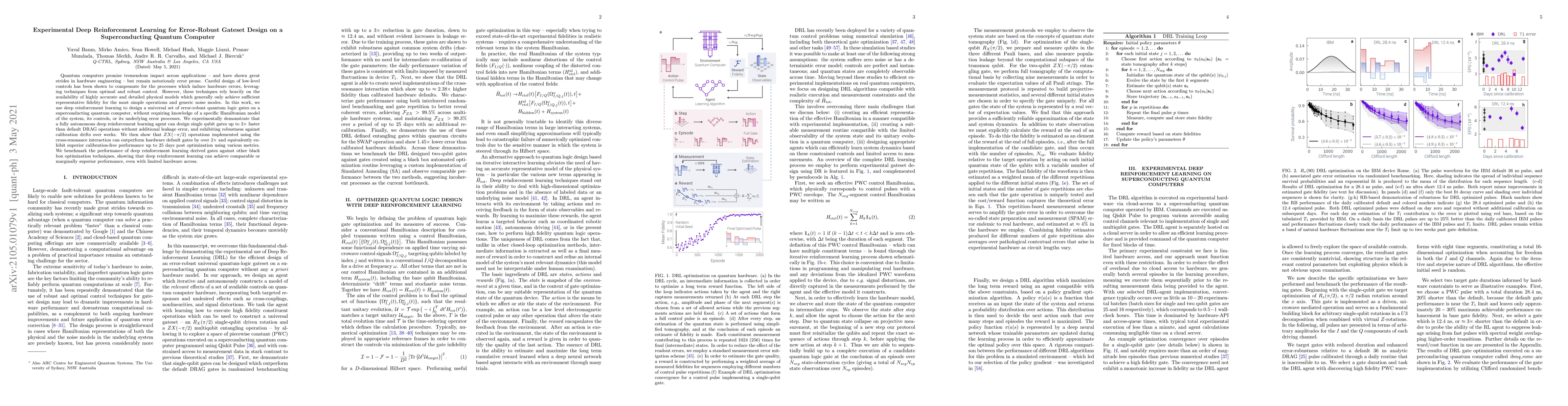 This paper explores the use of deep reinforcement learning to design a universal set of error-robust quantum logic gates on a superconducting quantum computer. The approach demonstrates significant improvements in gate speed and robustness without requiring detailed physical models, outperforming default hardware gates in various metrics.