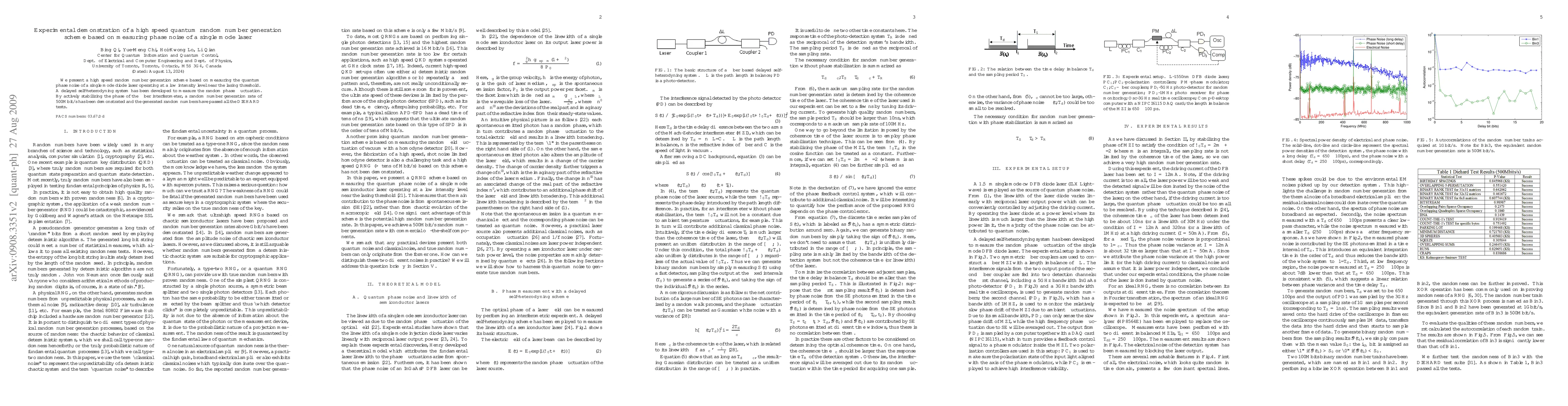 This paper demonstrates a high-speed quantum random number generation scheme using the phase noise of a single mode laser near its lasing threshold, achieving a rate of 500Mbit/s. The method employs a delayed self-heterodyning system and fiber interferometer stabilization, with generated numbers passing all DIEHARD tests.