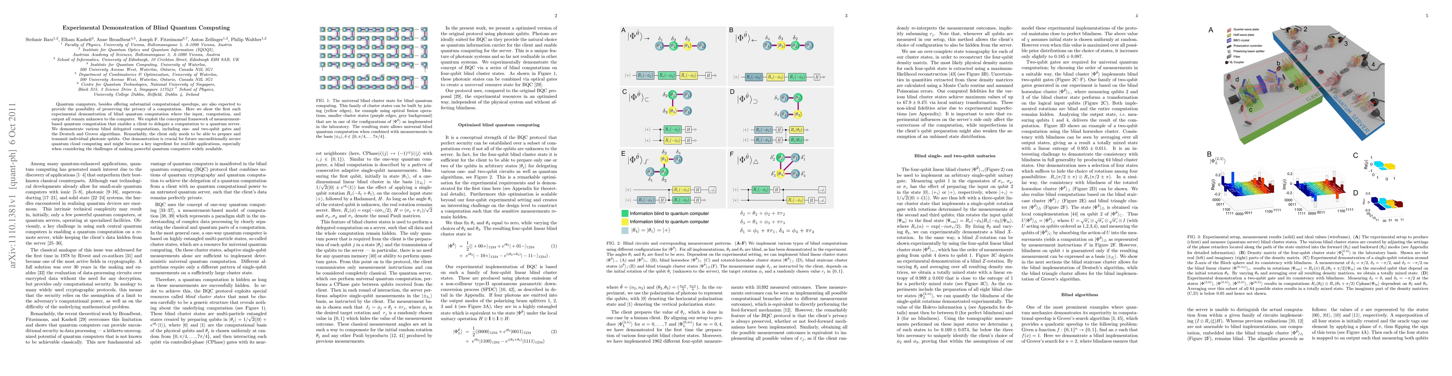 This paper presents the first experimental demonstration of blind quantum computing, showing how a client can delegate quantum computations to a server without revealing the input, computation, or output, crucial for secure quantum cloud computing. The study employs measurement-based quantum computation and includes practical implementations of one- and two-qubit gates and the Deutsch and Grover algorithms.