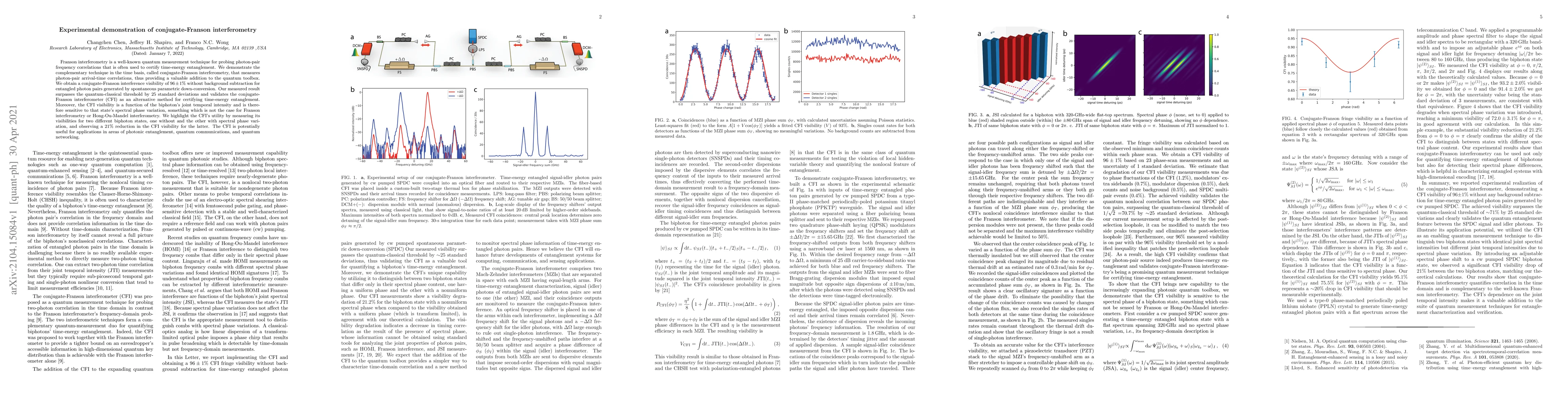 Franson interferometry is a well-known quantum measurement technique for probing photon-pair frequency correlations that is often used to certify time-energy entanglement. We demonstrate the complementary technique in the time basis, called conjugate-Franson interferometry, that measures photon-pair arrival-time correlations, thus providing a valuable addition to the quantum toolbox. We obtain a conjugate-Franson interference visibility of $96\pm 1$% without background subtraction for entangled photon pairs generated by spontaneous parametric down-conversion. Our measured result surpasses the quantum-classical threshold by 25 standard deviations and validates the conjugate-Franson interferometer (CFI) as an alternative method for certifying time-energy entanglement. Moreover, the CFI visibility is a function of the biphoton's joint temporal intensity and is therefore sensitive to that state's spectral phase variation, something which is not the case for Franson interferometry or Hong-Ou-Mandel interferometry. We highlight the CFI's utility by measuring its visibilities for two different biphoton states, one without and the other with spectral phase variation, and observing a 21% reduction in the CFI visibility for the latter. The CFI is potentially useful for applications in areas of photonic entanglement, quantum communications, and quantum networking.
