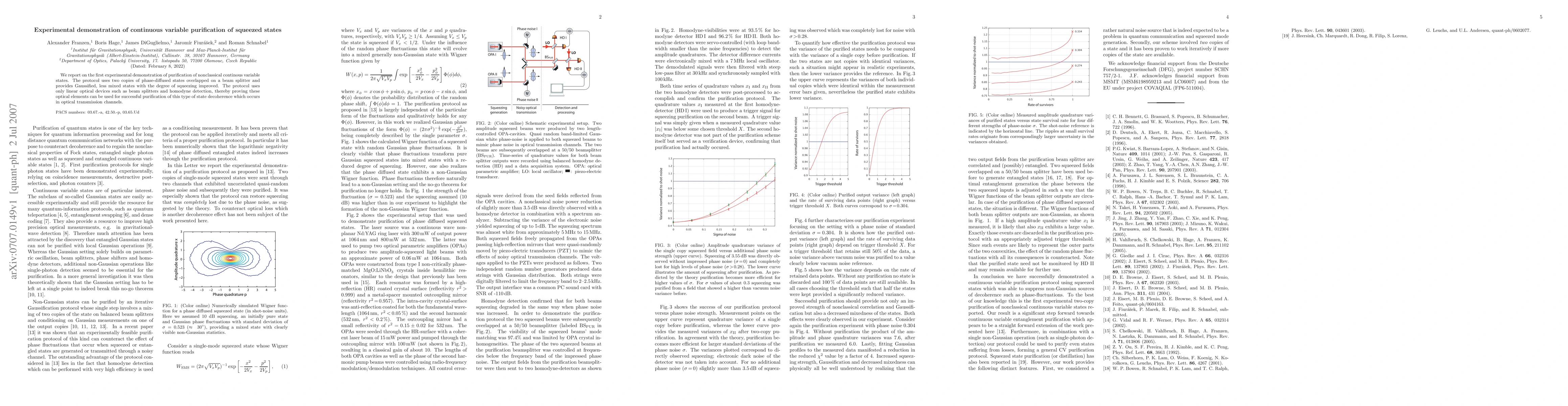 This paper demonstrates the first experimental purification of continuous variable squeezed states using linear optical devices, achieving Gaussified, less mixed states with improved squeezing, proving the utility of these elements in mitigating decoherence in optical transmission.