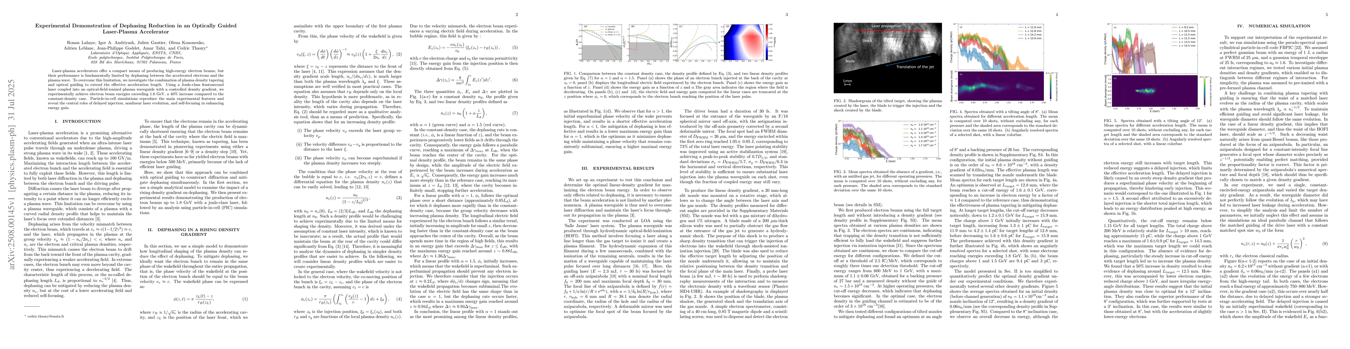 Laser-plasma accelerators offer a compact means of producing high-energy electron beams, but their performance is fundamentally limited by dephasing between the accelerated electrons and the plasma wave. To overcome this limitation, we investigate the combination of plasma density tapering and optical guiding to extend the effective acceleration length. Using a Joule-class femtosecond laser coupled into an optical-field-ionized plasma waveguide with a controlled density gradient, we experimentally achieve electron beam energies exceeding 1.6 GeV, a 40% increase compared to the constant-density case. Particle-in-cell simulations reproduce the main experimental features and reveal the central roles of delayed injection, nonlinear laser evolution, and self-focusing in enhancing energy gain.